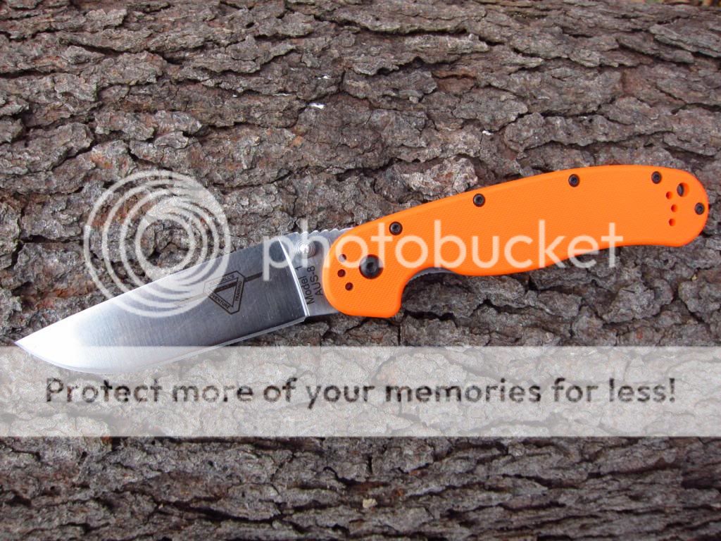 Orange g-10 scales with blue liners. Duratech 20CV steel.