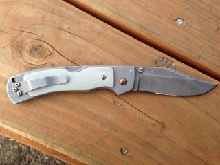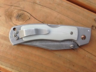 New gray G-10 scales, dark stonewash on the frame and blade, heat anodized screws, mirror edge.