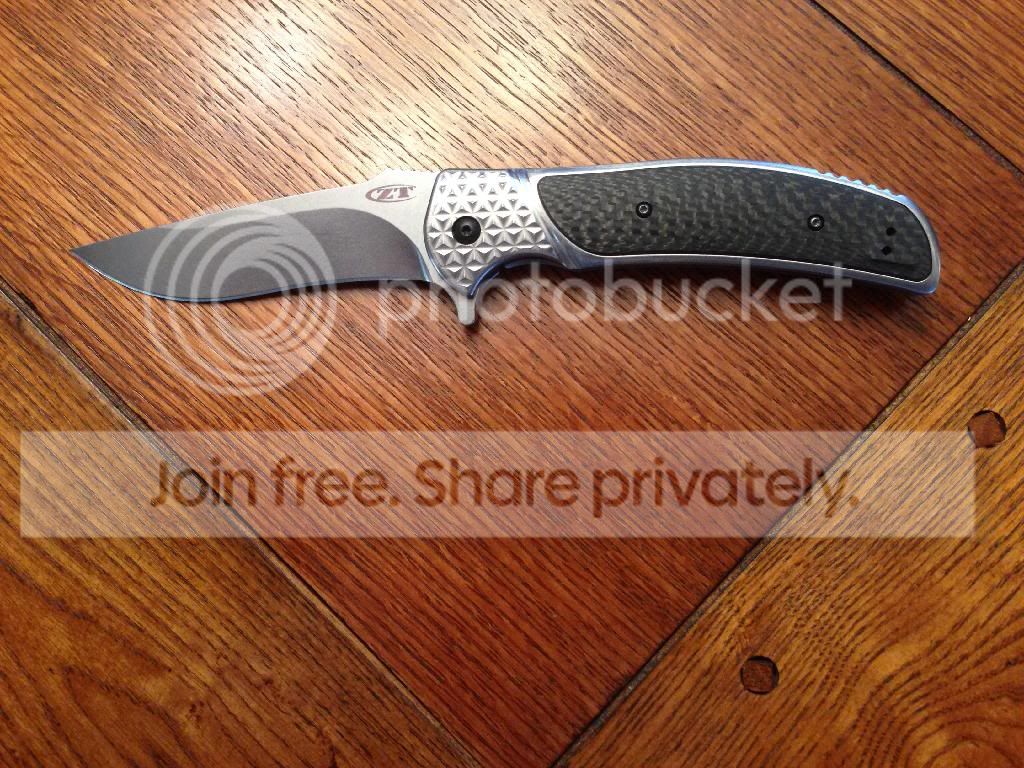 I have for trade a zt 0600 that has been pimped. The titanium texturing has been smoothed except for one area giving it a bolster look. It has the factory carbon fiber scale and also a textured orange one, and a smoothed coyote brown one as well. It is in good shape, flips well and appears to have the factory edge. I like the knife but it's just too big for me. Interested in CRK, and other quality folders, maybe a microtech DOC?