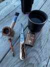 Charlie Town cobbler is a great pipe. I enjoy one often.Missouri Meerschaum Cornell and Diehl pipe with McClelland's Best of Show (all time favorite blend). Enjoyed a pipe and a read in the serene hills of Mo. My mini-muk to keep me company.