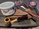Meerschaum filled with Wessex Burley Slice today. Also pictured is an awesome pipe tool from Sheffield gifted to me byJack Black . Go Phils!!!!
