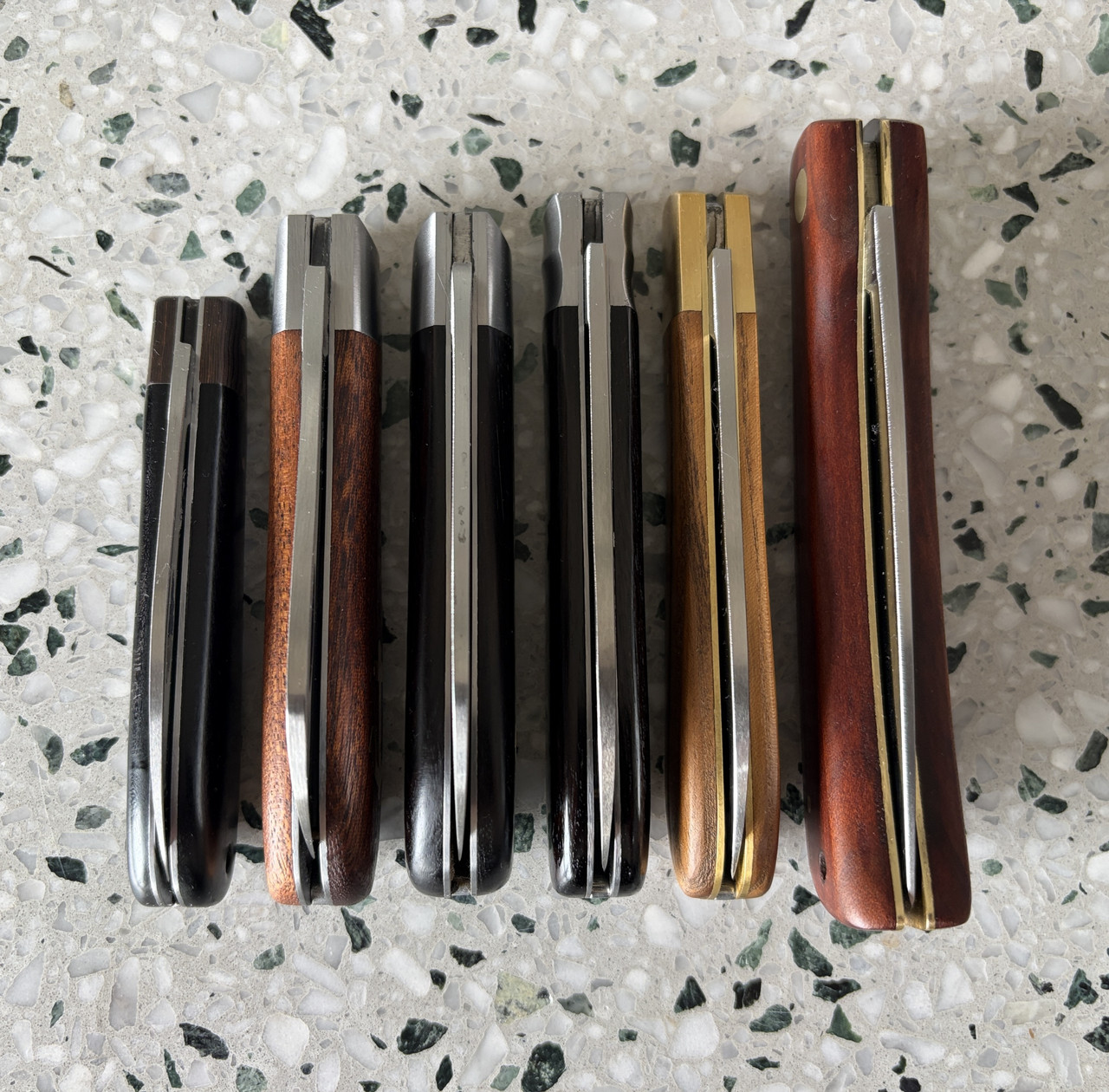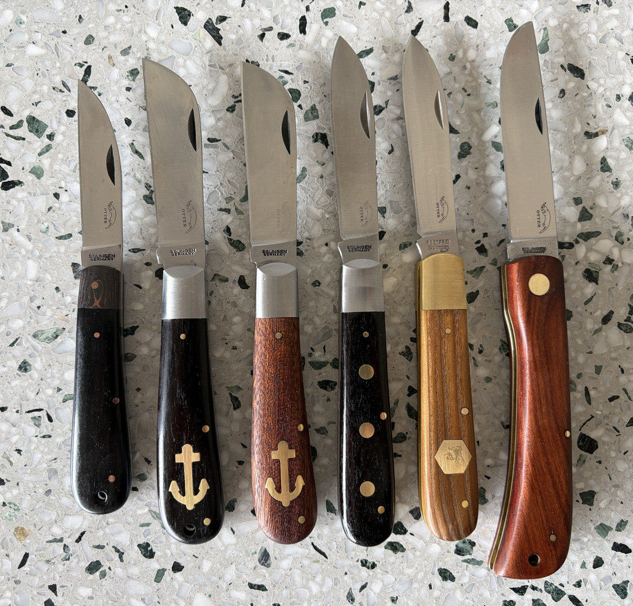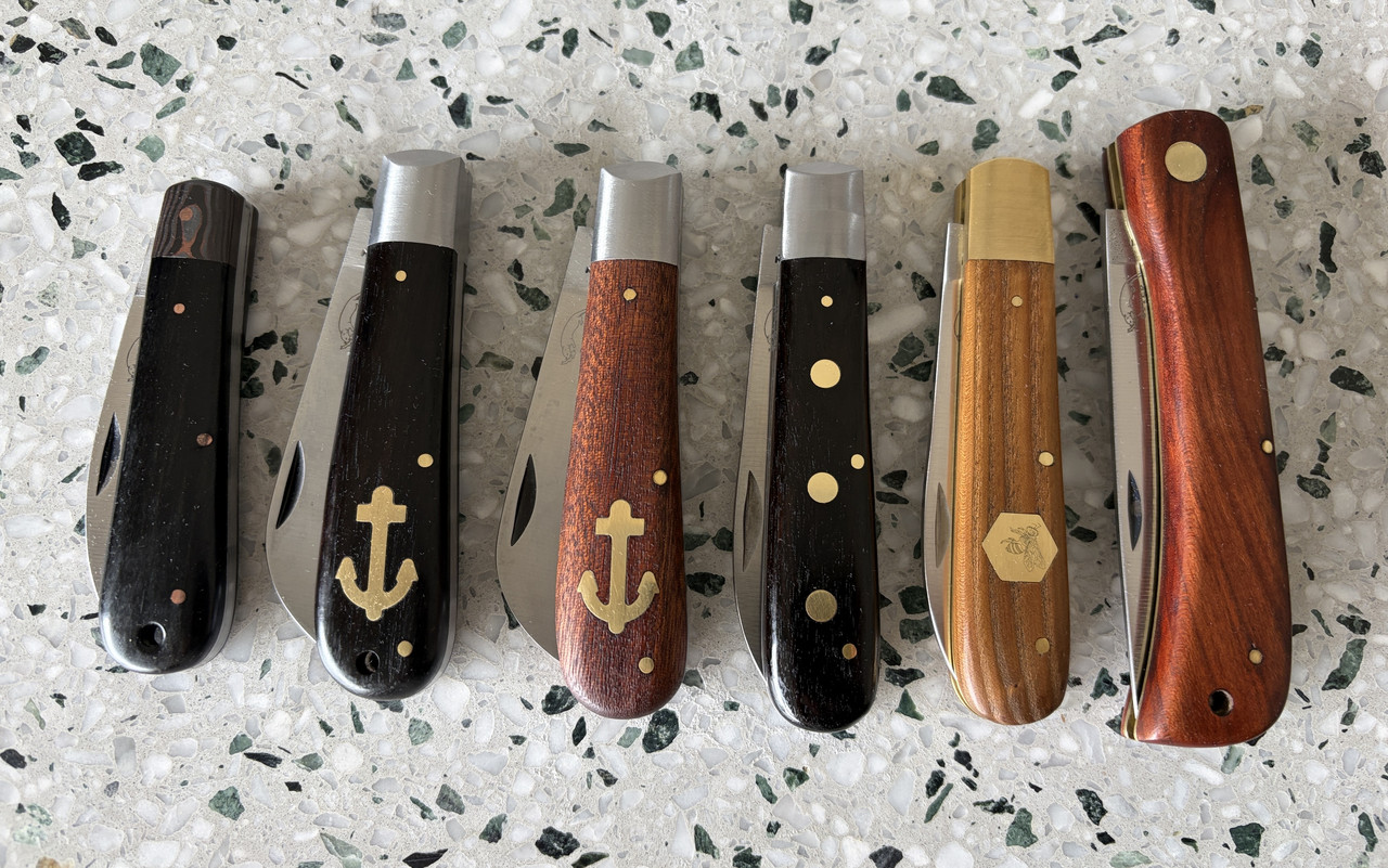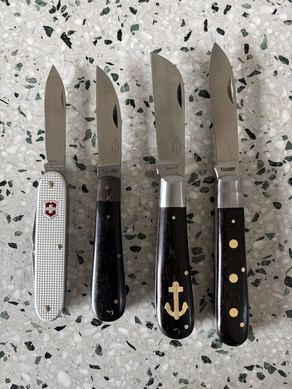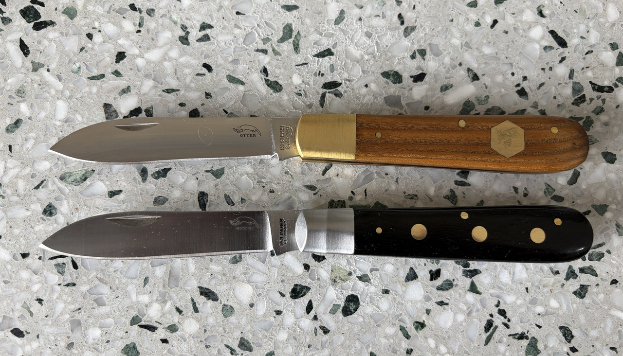 They snap like bear traps. The brass rivet versions are a little harder to get because of the wood they use for the handles. They’re only sold in Germany and not exported for sale. Something about the wood coming from an endangered type of tree?I have one of these "drei nieten" but the rivets are stainless, not brass. Yours really stand out! I am considering engraving my initials on the rivets, or maybe my farm brand ("E&E", also three symbols).