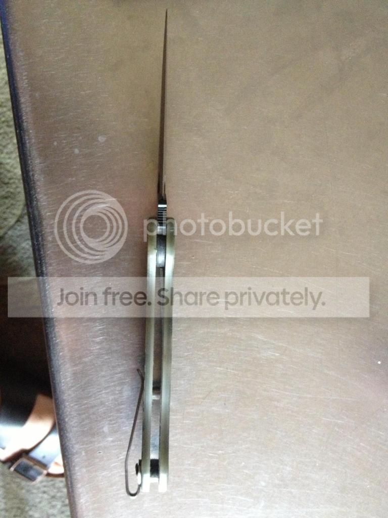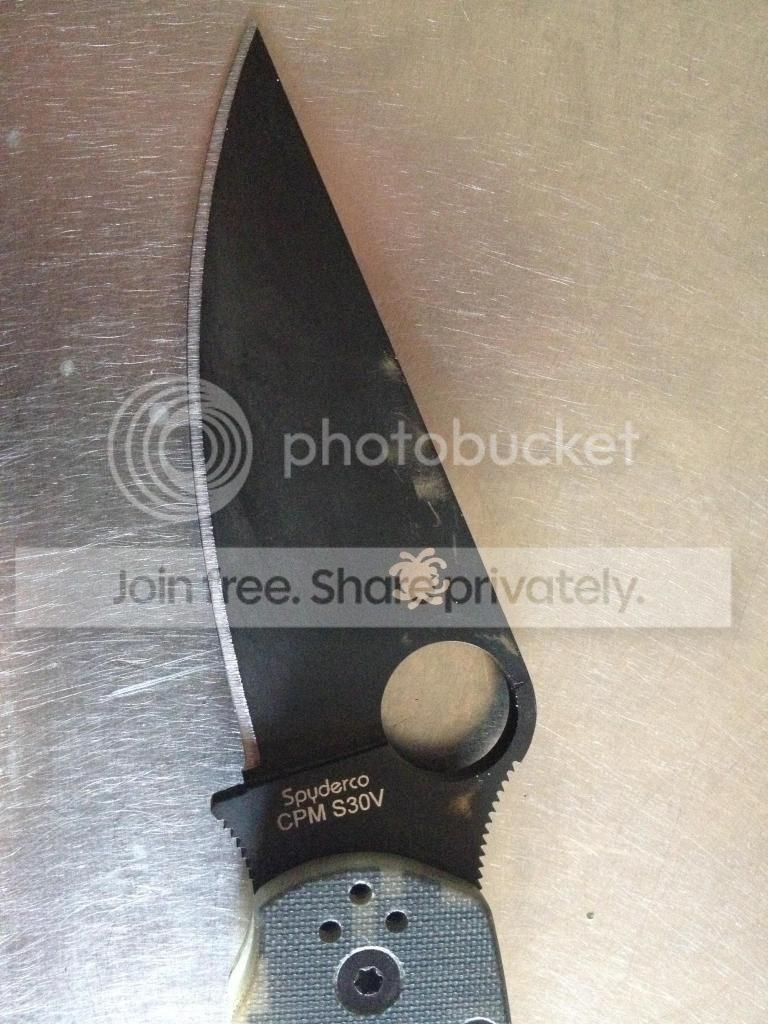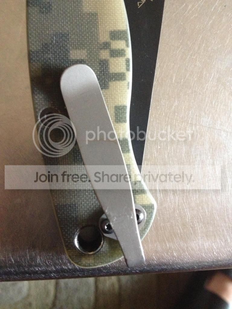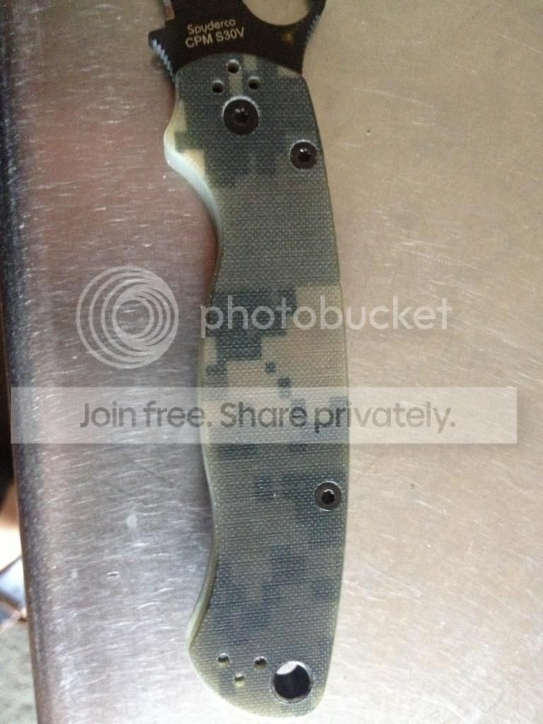 I have a Paramilitary 2, black blade, digicam G10. and a bead blasted STR Lowrider pocket clip. This knife is in excellent condition but has been used. There are minor scratches in the g10 and on the black blade coatings. Lock up and centering is perfect. Blade has been touched up once on my sharpmaker. I primarily used this knife for cutting cheese and opening envelopes.