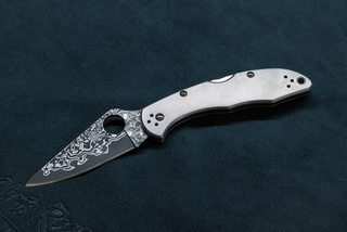 4) Spyderco Delica 4 Damascus Titanium SOLD
