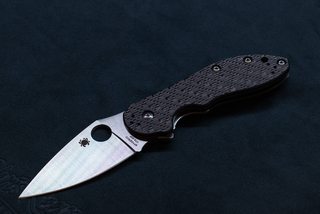 Bought a few months ago, never used, never carried, like new. Damascus lamination line is off center, like pretty much all of their damascus knifes seem to be, so nothing wrong there, just worth noting. Comes with the spyderco pouch it was shipped it (knife came in a pouch, not the traditional spyderco box).