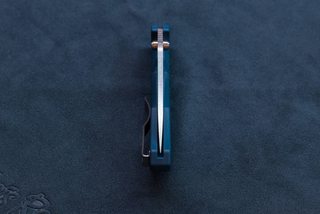 This is a bit of a mutt, the S30V Black DLC blade is like new, never being used and never being carried, it's basically a brand new blade. The liners/mounts/screws have never been carried either, but most of the body screws are marred to some degree, that's what happens when you use subpar torx drivers on Spyderco's soft metal screws I guess. None of the screws are stripped though. The clip is like new, it has a scratch on the end that took some paint off, not sure when/where this happened but it's never been carried. The scales are flytanium tumbled stonewash scales that were carried by someone else, some visable markings and some feinter markings are on them. There is also a blue anodized titanium lanyard tube installed. Lastly, I will include black scales and a fairly beat up lanyard tube from another PM2. The scales were heavily carried, and if I recall, the white stains are teflon grease that never quite came off, but then again I didn't scrub them down. The titanium scales and titanium lanyard tube are $95 in extras alone.