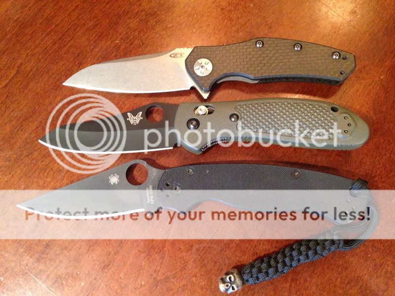 Ritter Grips are same price as Para's, have ffgs,have more durable blades and scales (imo),have a better warranty and cs than Spyderco (imo), oh and you don't have to worry about Clones with Griptilians. I like Spyderco. Every single models I've had felt like was molded to hand, but with the way their warranty is and most of their models being "fragile" and having to constantly question yourself whether you have an orginal or not is the reason stay away from them. It's kinda sad to that mo st of their models I like are made overseas. I have a delica with custom scales I love dearly. The ffg delicas blades though are insanely breakable so afraid to use for alot of things. Good thing is though delicas are cheap enough where I don't mind breaking it. Their are models like the Najavo and Hungarian still want to own but like buying my knives second hand always worrying about ending up with a clone. From what I seen both those models are cloned to precision. To hard to tell for me. Though think if you have owned a model before you could tell if ended up with clone. Anyways I personally just prefer Benchmade all around. Granted there are plenty of their models don't like either. But the ones I do have multiples of and will keep til the end. Benchmade has been SO good to me can't even put it all into words. All the freebies and customer service warranty repair has been border lining prefection.