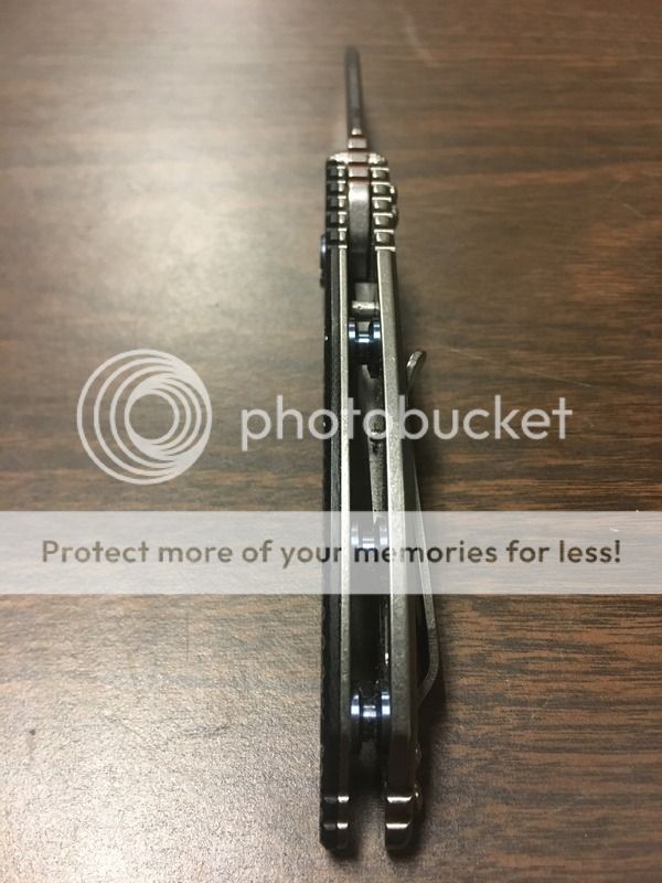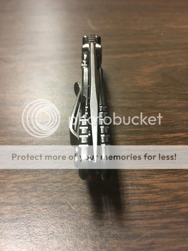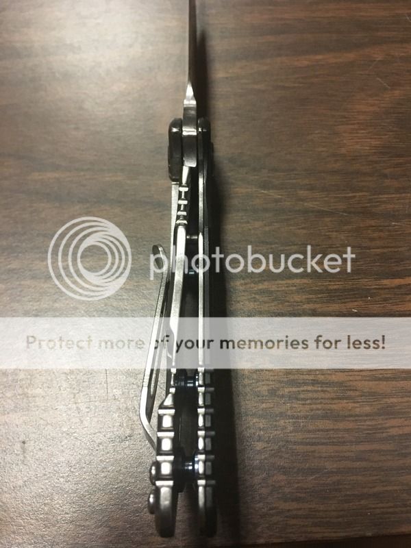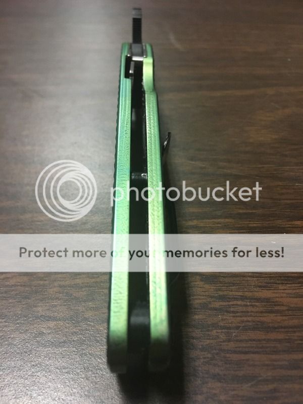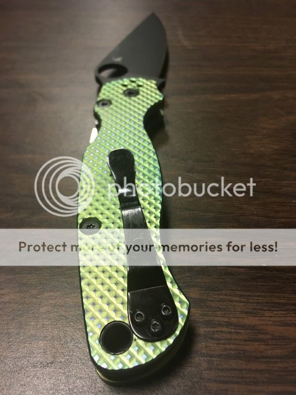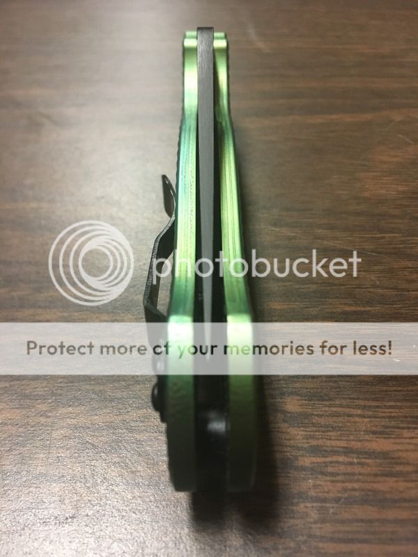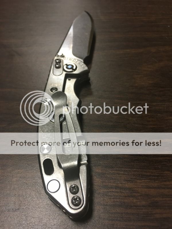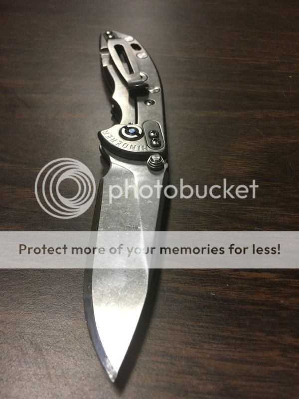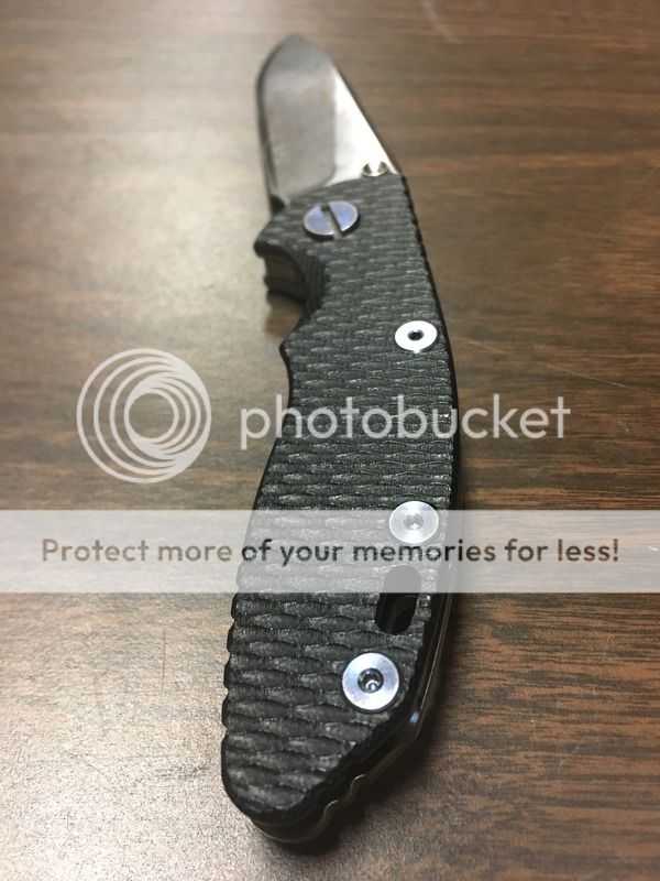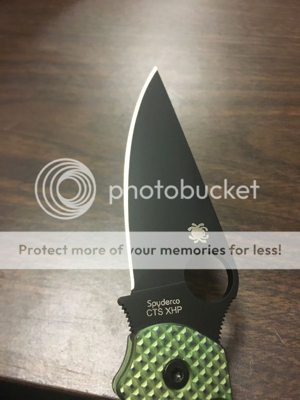 slicer grind in sterile 20cv, blue hardware, blade was sharpened with mirror edge, flipper delete. Smooth action. SPF