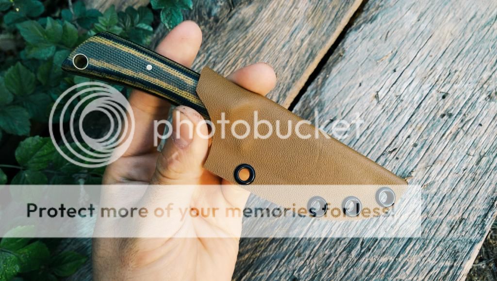 Comes with kydex sheath spaced for large tek lok (1.5 inch spacing)