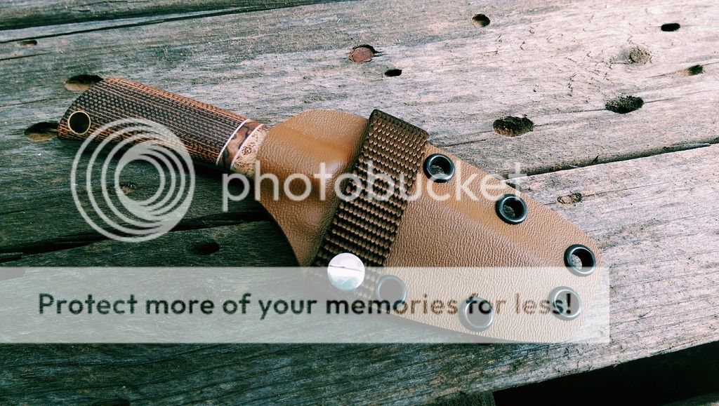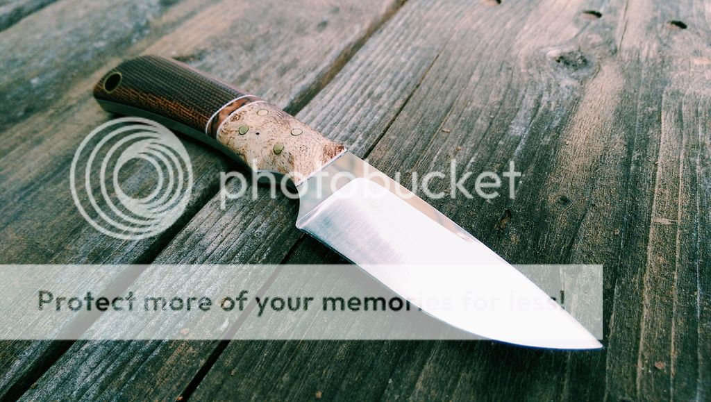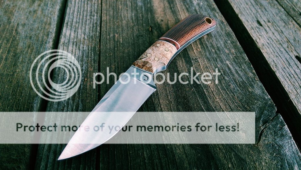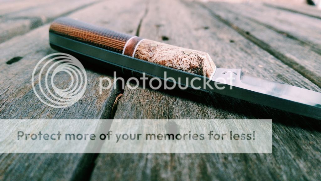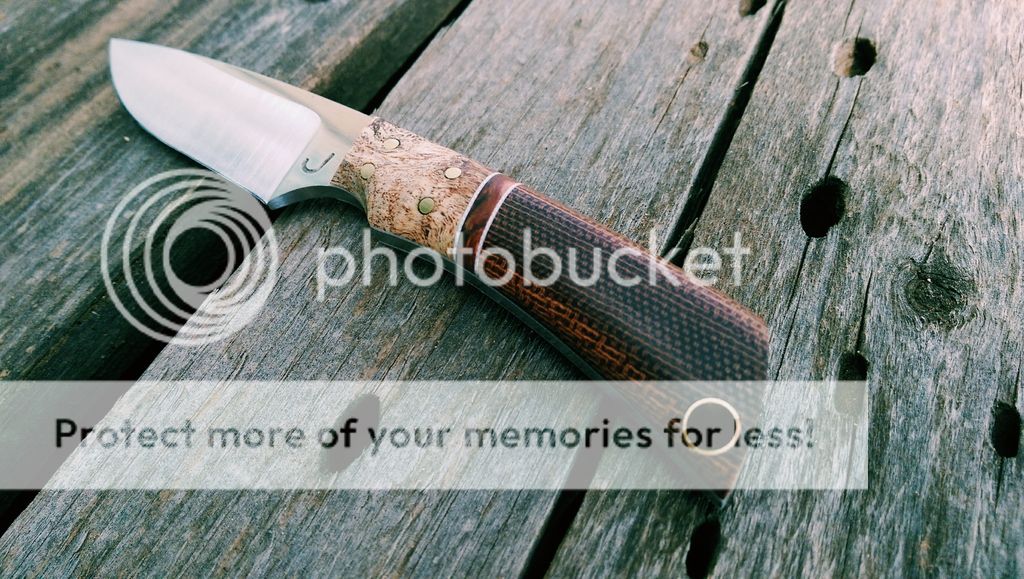 Scales are stabilized burl with White G10 liners and Micarta, brass hardware