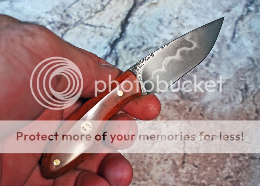 This is some W2 from Don that I forged into a pocket fixed blade design. The blade is hand polished to 1500 grit and etched to bring out the hamon.