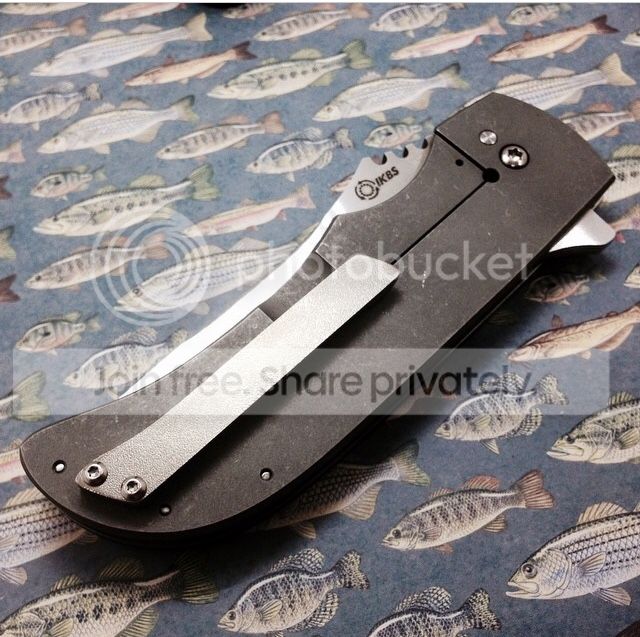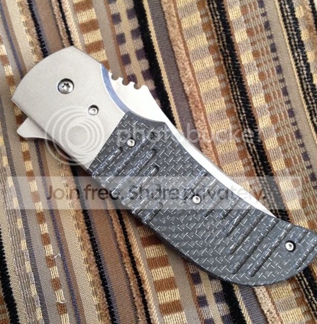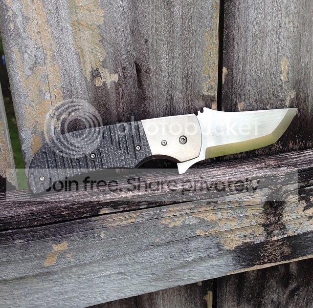 For sale today is my 3.5" Leu Bluephin. This knife is wearing a orange peeled Ti bolster and clip along with a silver LSCF scale with some decorative milling. There are no wires poking out of the LSCF. The frame is stonewashed, and blade is satin finished. Scary, stupid, crazy sharp just as I got it from Pohan. The action is perfection. It has a nice detent and fires out like a rocket. Don't put your fingers in the way when closing this knife or you might lose them. Has been carried and has some very light use on it. 95%+ easily.