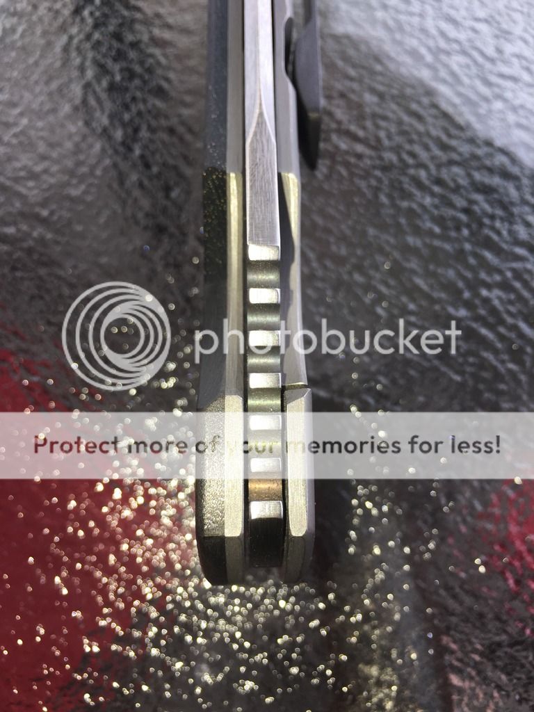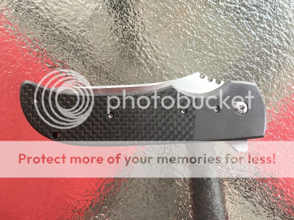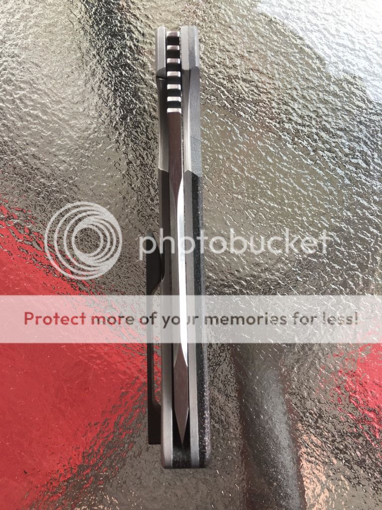 Hey all, up for sale is a Pohan Leu Bluephin. This blade is second to me but in excellent condition. This knife features a 4" S35VN blade with Pohan's crazy sharp scandi grind. The blade is satin finished on the flats and is belt finished on the grind. It has a lightning strike carbon fiber (copper) presentation side scale with a zirconium bolster as well as a zirconium 3D milled pocket clip. The bolster and clip are orange peel finished. This knife is running on IKBS and is crazy smooth. Lockup is about 35% and solid as a rock with zero play in any direction. The detent on this is strong and the blade rockets out. There is some light coloring inside the jumping which, according to Mr. Leu is luck of the draw when it comes out of heat treat. I believe his wait time is about 18 months so if you've been wanting to get your hands on a great example of his work, now is your chance. I am asking $550 shipped to your door in the USA, fully insured. Beautiful knife that was carried lightly and rarely used by opening some packages. Any questions please contact me at gibson2015@gmail.com
