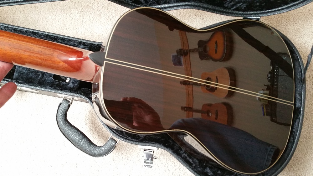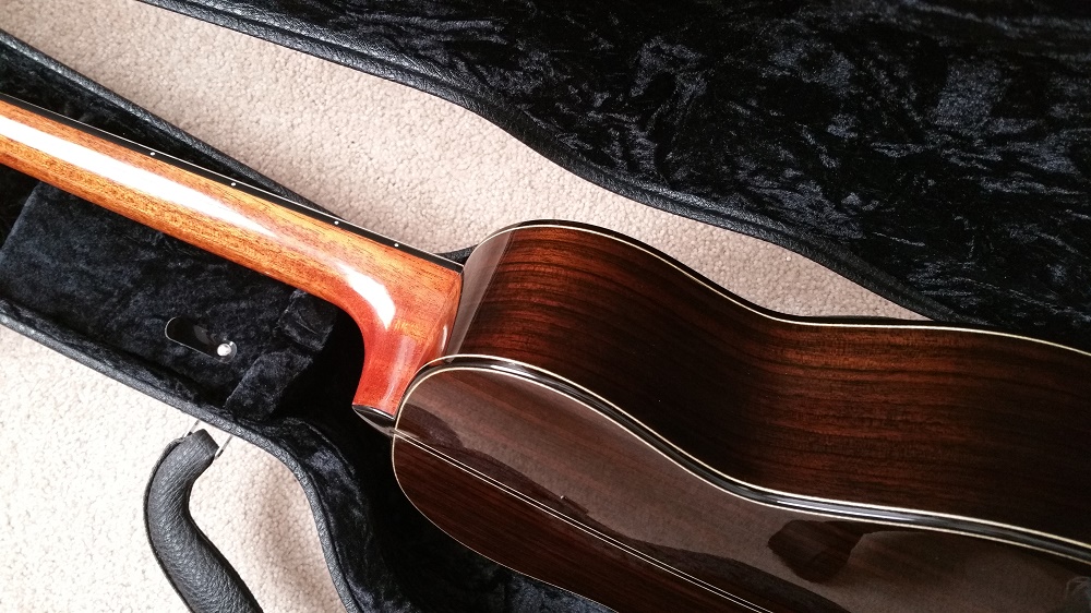Macassar Ebony faceplate, Ebony radiused fingerboard, and bridge