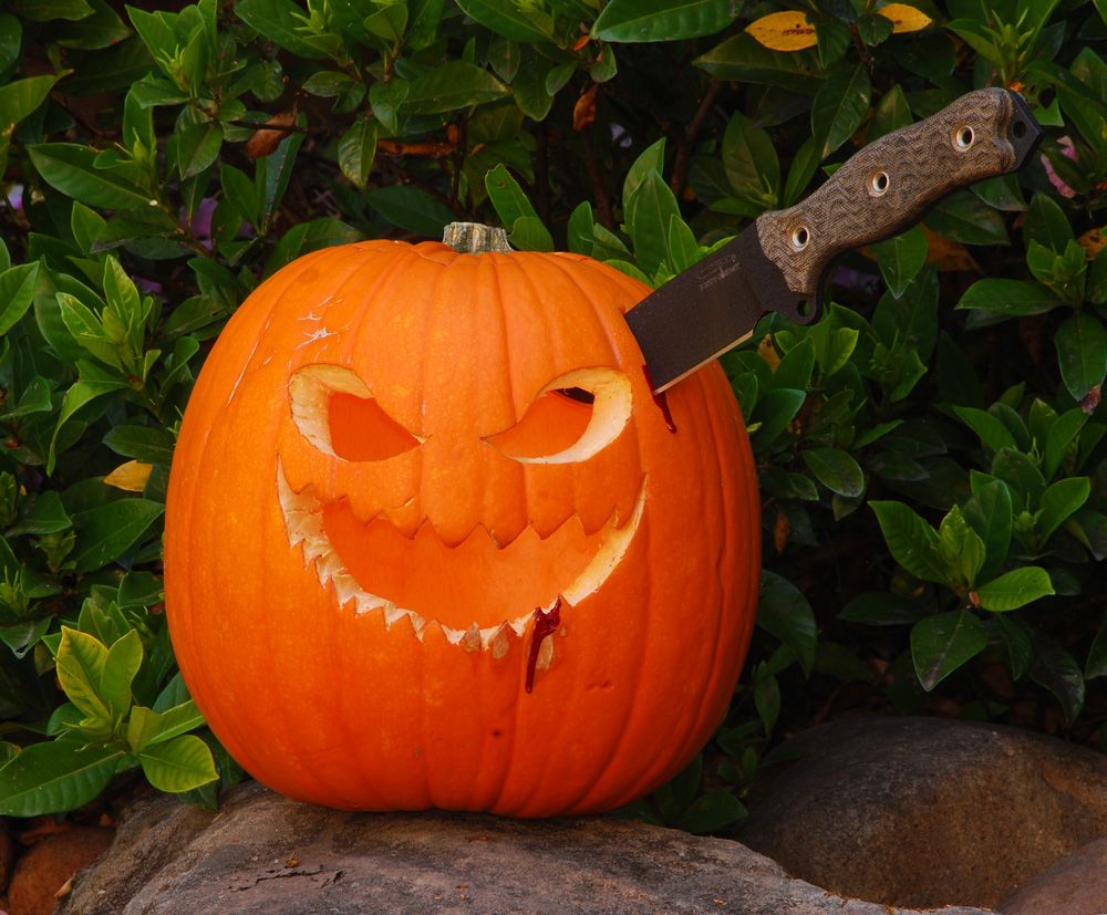 There I was, harmlessly working out side the door of the Man Cave trying to get the hang of the new Worksharp tool I just got... over the hum of a grinding belt meeting a BATAC I heard something.....it was something not of this world.... like the sound of pure evil speeding towards me....!!! I looked up and saw it coming, like a vision of orange hell with little gnashing orange teeth....intent of ripping my very soul from my body....now to be completely honest....I think I pee'd myself a little at this point.... but I think I can be forgiven for this lapse given the hellish scene confronting me....!!!!