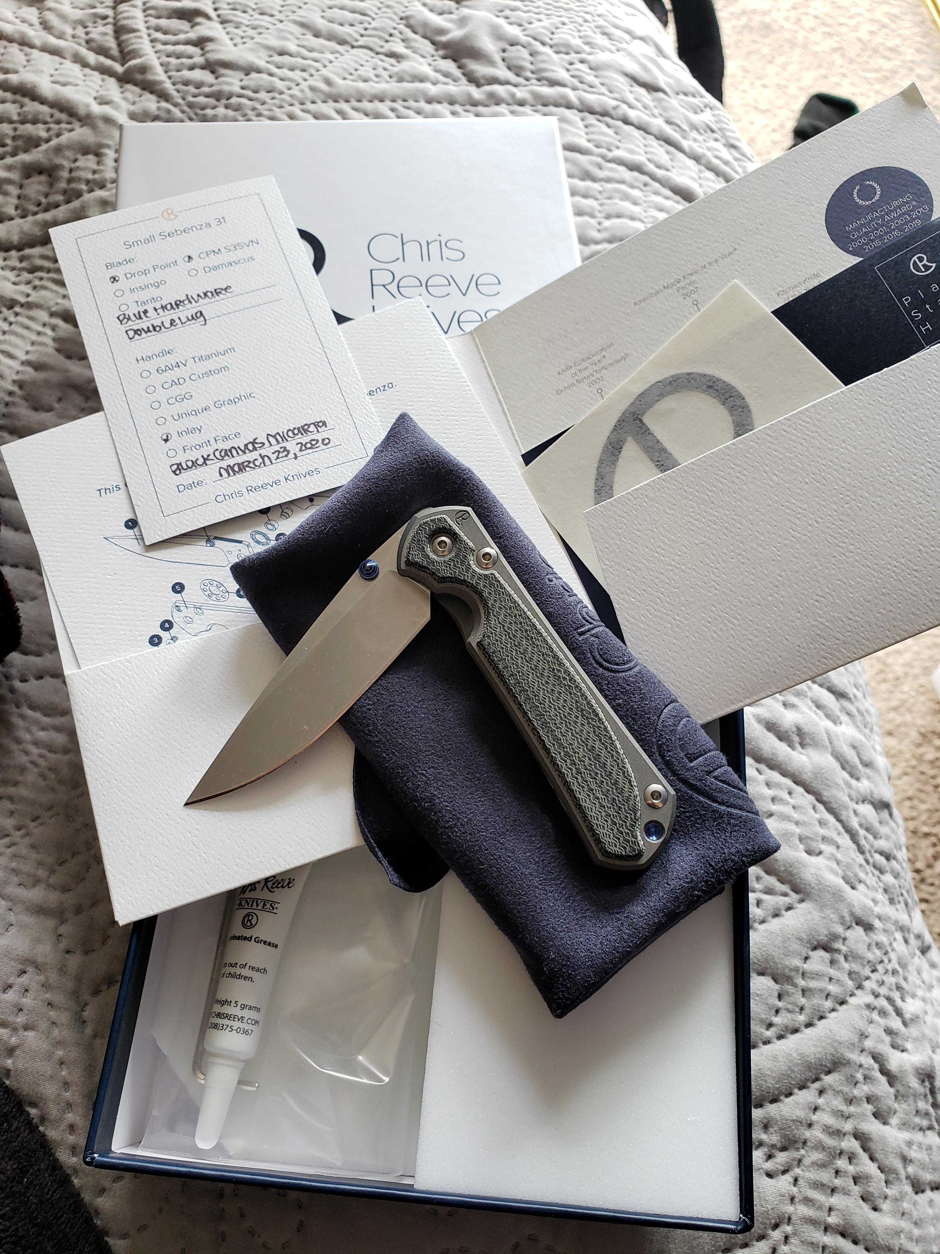 FS: Excellent, near new condition CRK Small 31 with black micarta inserts and double lugs. I did cut off that sad little lanyard, and have maybe made 3 cuts total through some clear packing tape, but aside from that and whatever marks from 9 days in my pocket it's pretty excellent all around.