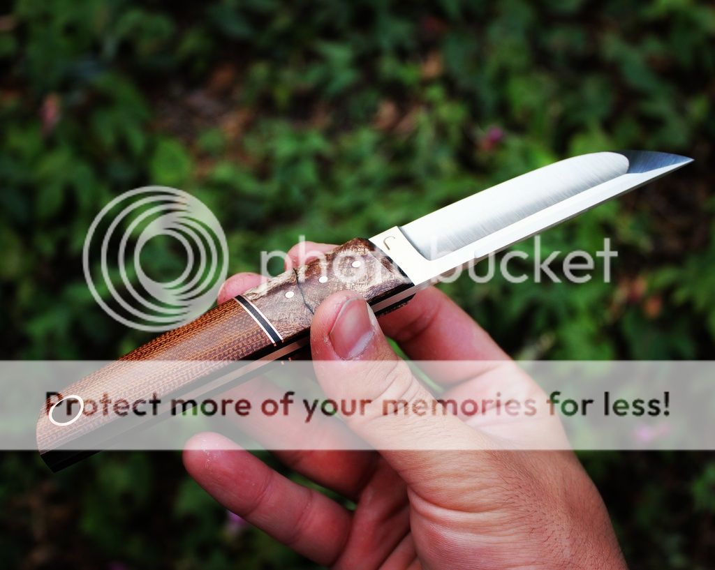 Hey everyone, today I have a very nice compound ground kwaiken. The blend of vintage micarta, spalted maple, and copper makes for a very nice piece. Hope you all like it!