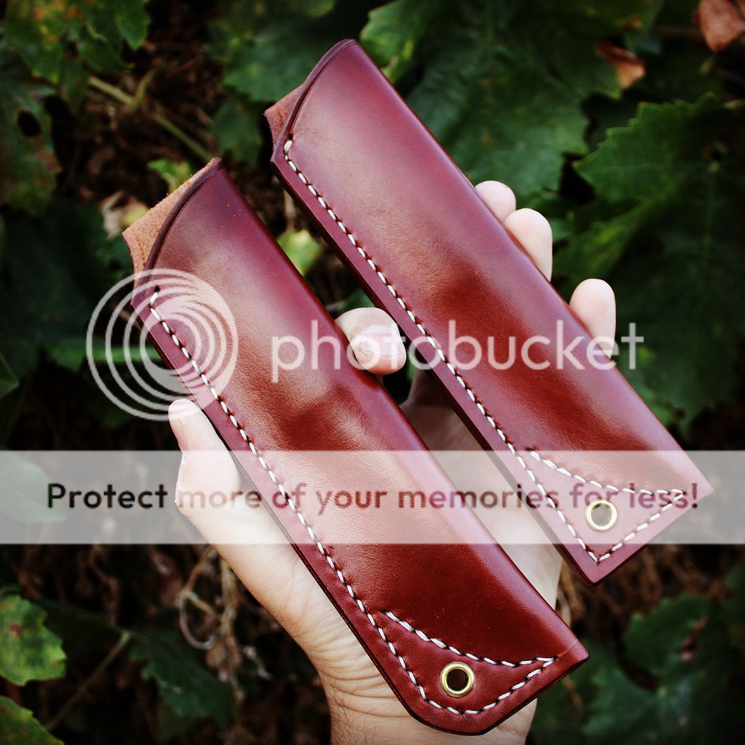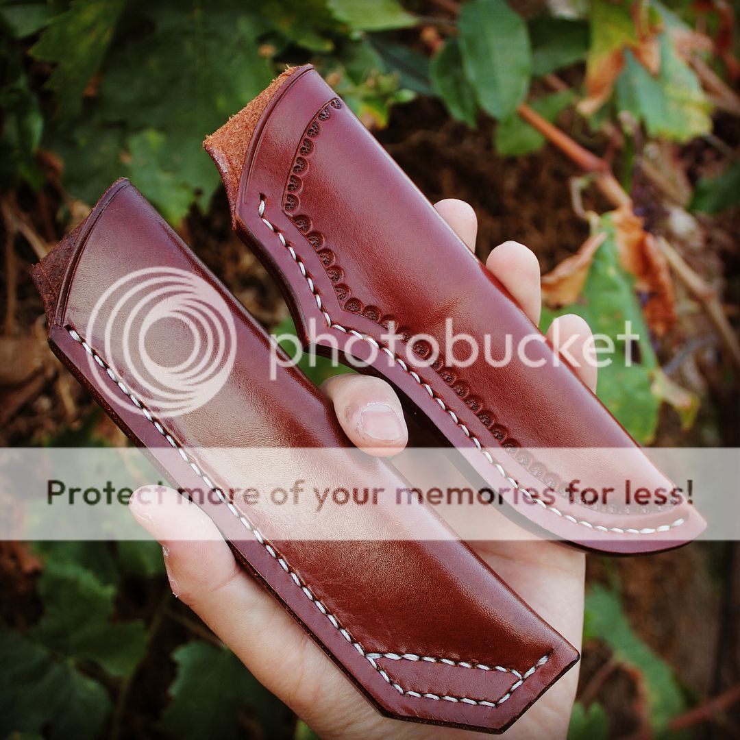 Hey everyone I know its been a while since I posted. One of the reasons for this was to be able to work with an excellent craftsman to develop some premium leather sheaths designed specifically for my knives. I hope you all like them as much as I do.