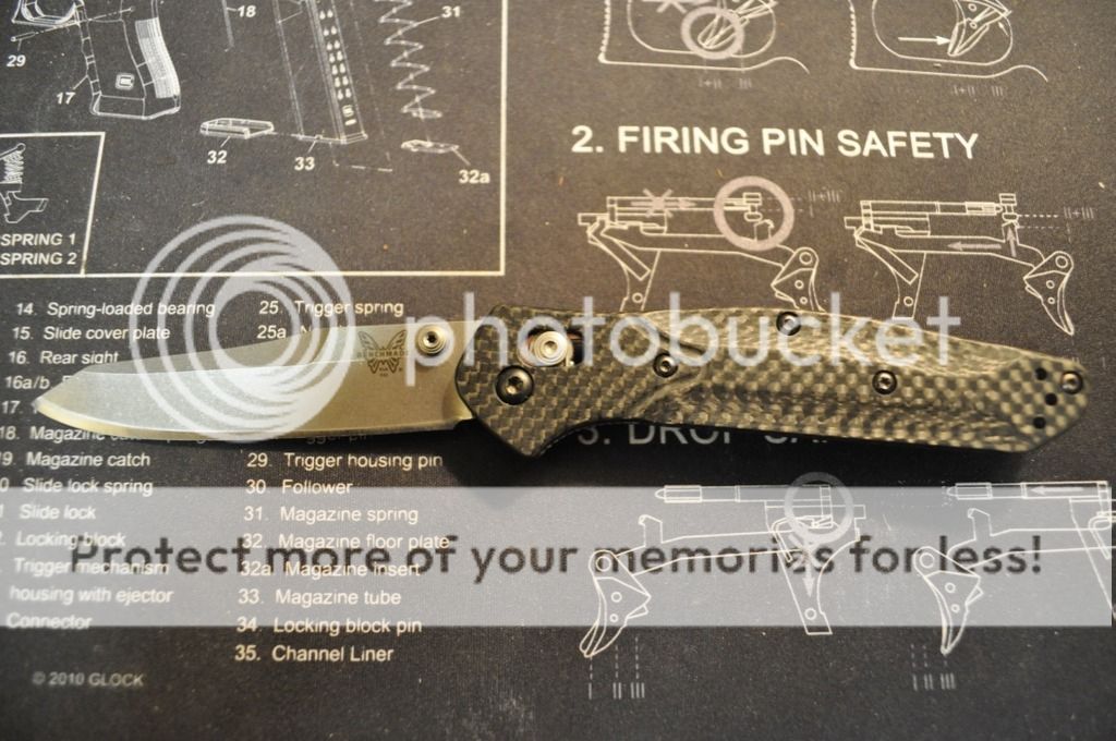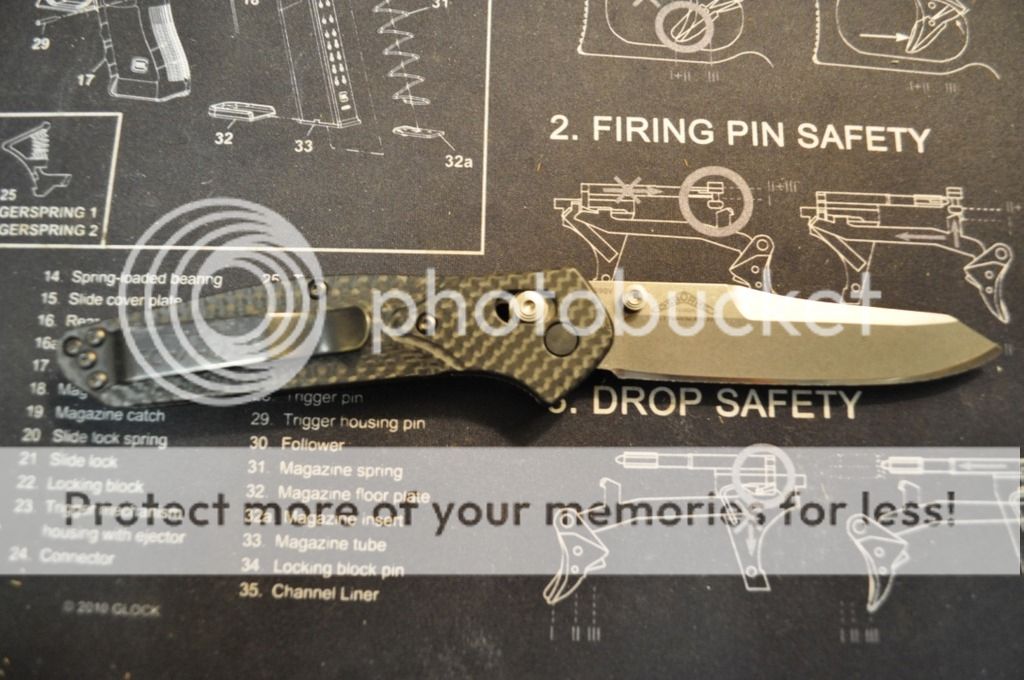 This knife has been carried and shows wear on the clip. I had a friend sharpen it before I got an EdgePro and he backed the edge up way to far. I got it sharp with the EdgePro but it still could be sent back to Benchmade for a new blade if it bothers you. Comes with the box. Price on this one is $190.00 net to me via PayPal. I will pay for shipping. PM me with offers. Thanks for looking.