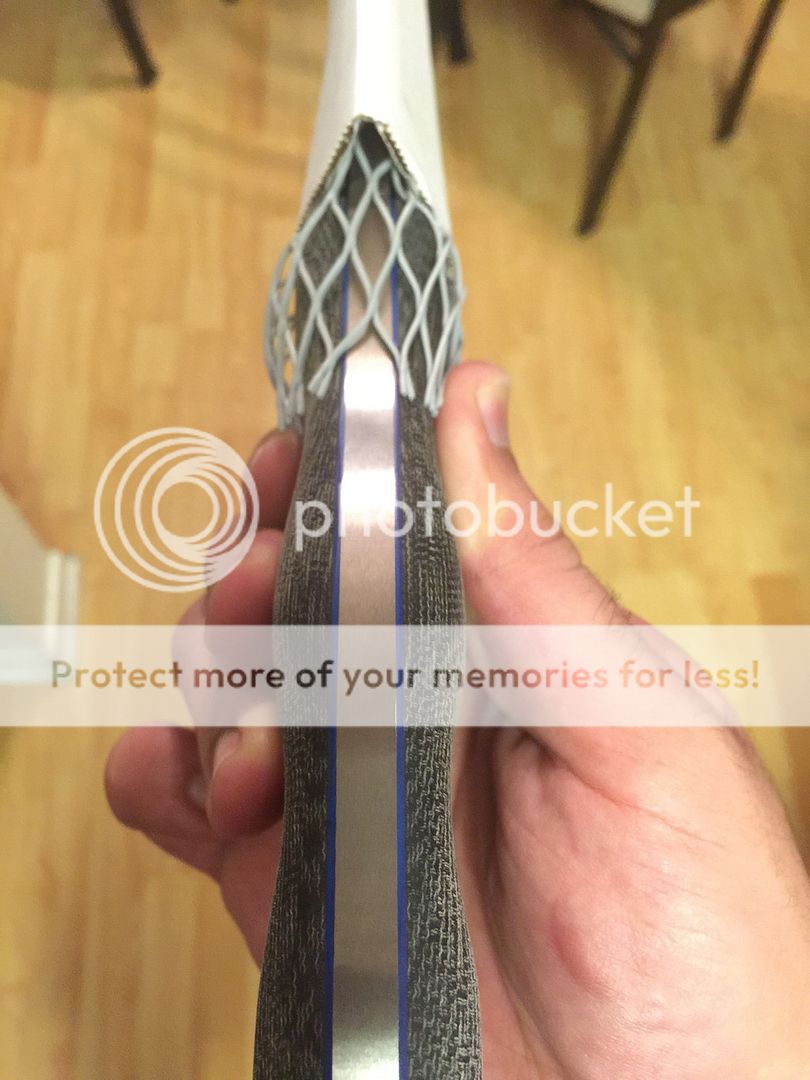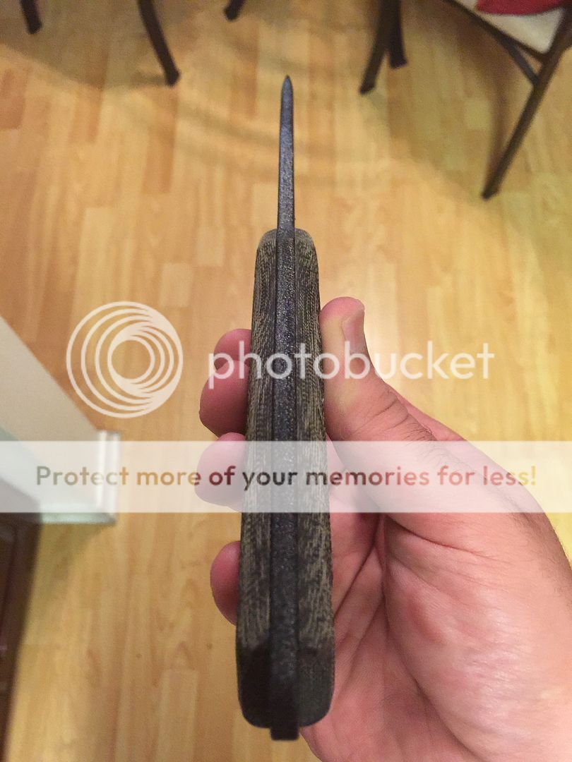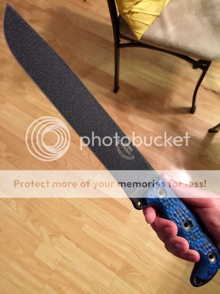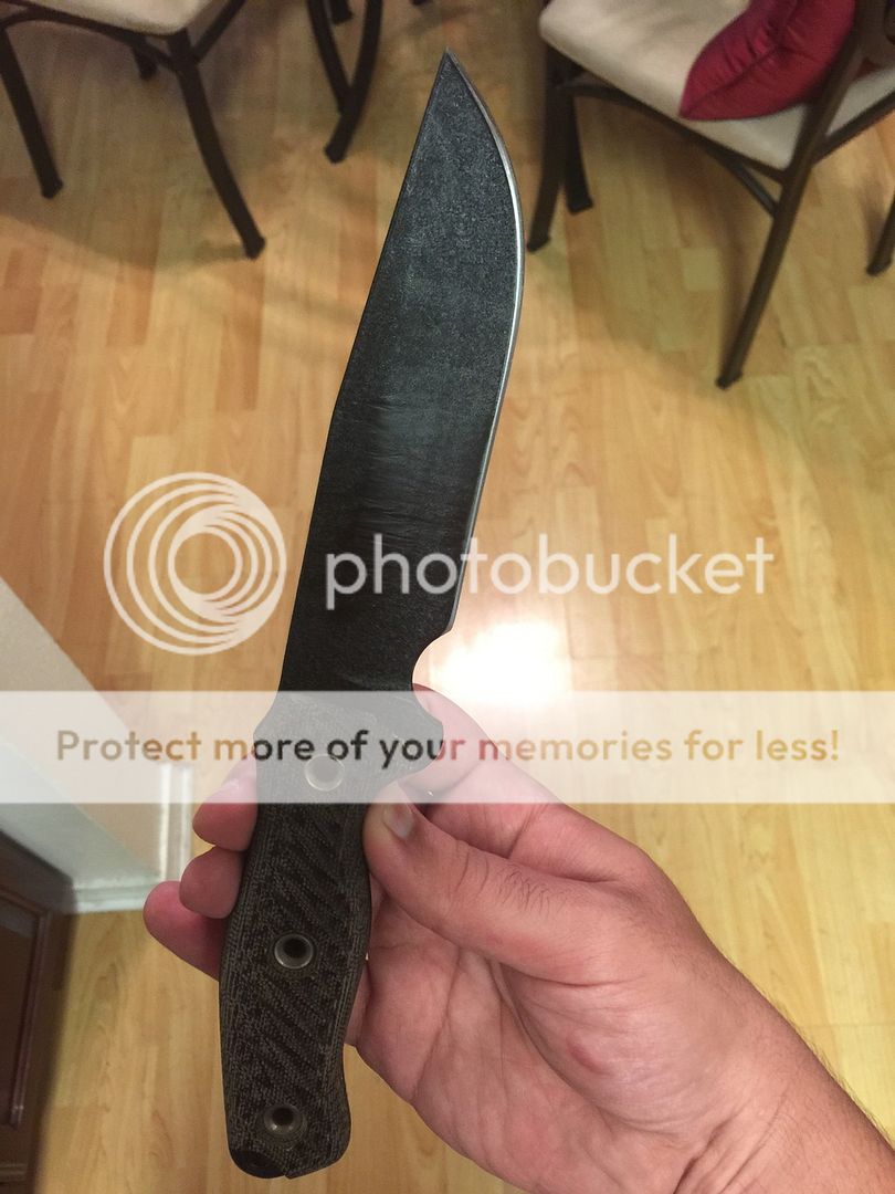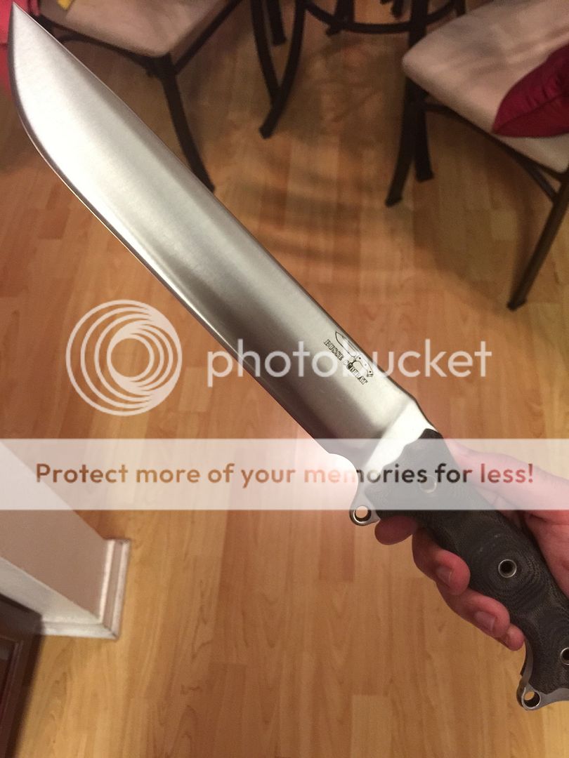 1. Brand Spanking New Custom Shop Satin NMFBM (Nuclear Meltdown Fusion Battle Mistress): Hand Shaped Black Canvas Micarta handle with Blue Liners. It feels amazing and it really hurts to let this one go.