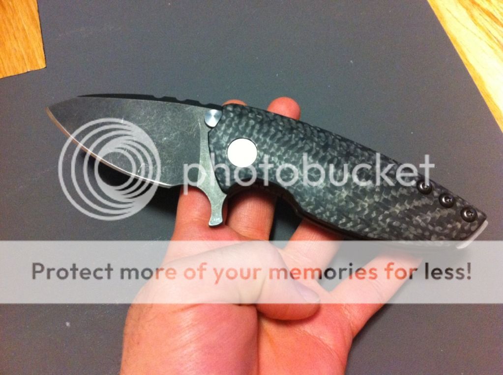 Just got this from another member, its just not for me at all. Not my style. Flips nicely, solid lock up. No issues what so ever. Has not even been broken in. Dark oxide m390, black carbon fiber with brozed ti lockside.