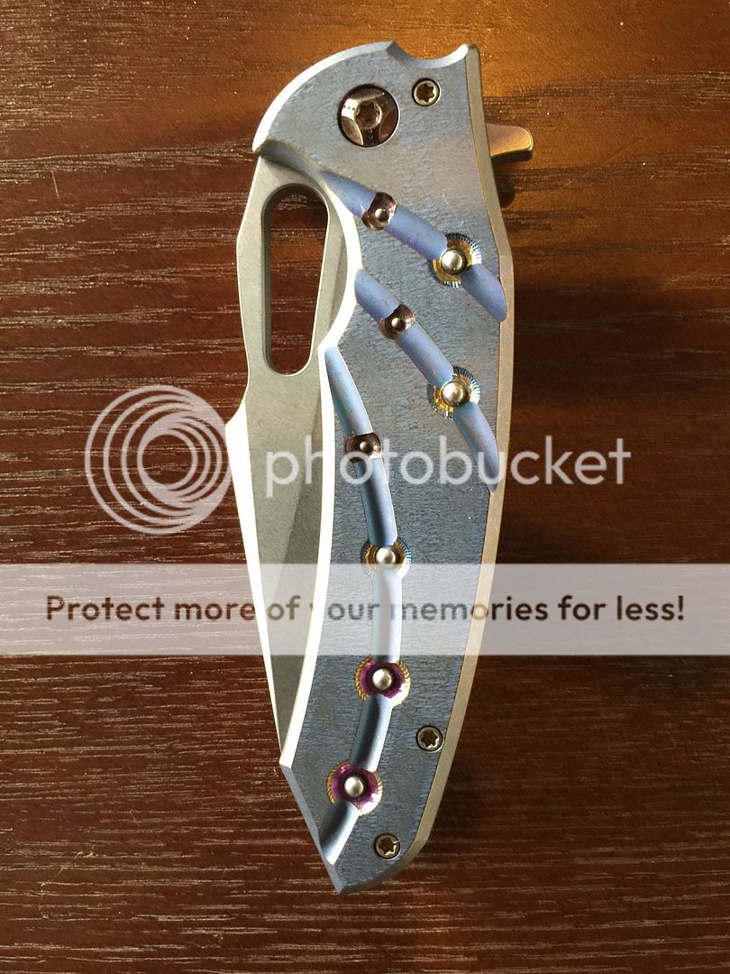 I included both indoor and outdoor pictures to show the contrast of colors seen on this knife.