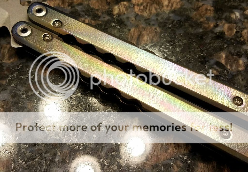 Protech Flyfather with rainbow anodizing and orange peel finish 1 of 1. Stonewash blade, titanium handles. Safequeen since I got it from bladehq. Comes with everything original. Condition: 10/10. Specs of the knife on bladehq http://www.bladehq.com/item--Protech...alisong--33134 $450 --> $440 shipped.