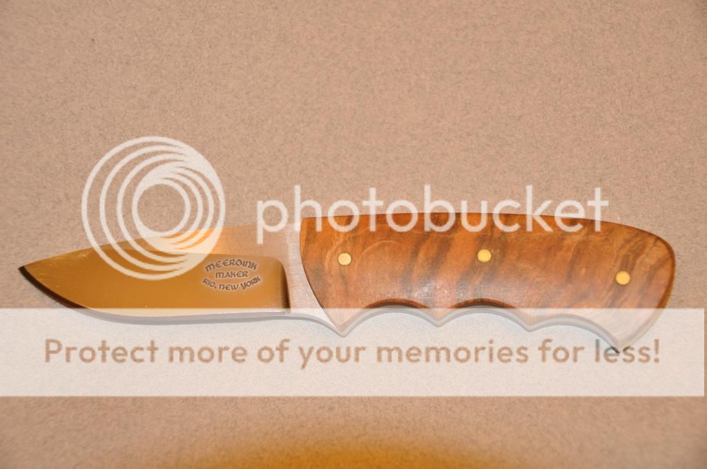 Last is this Kurt Meerdink Tomcat. Has a mirror polish on the blade with a Kydex sheath. can be worn on your belt or carried as a neck knife.