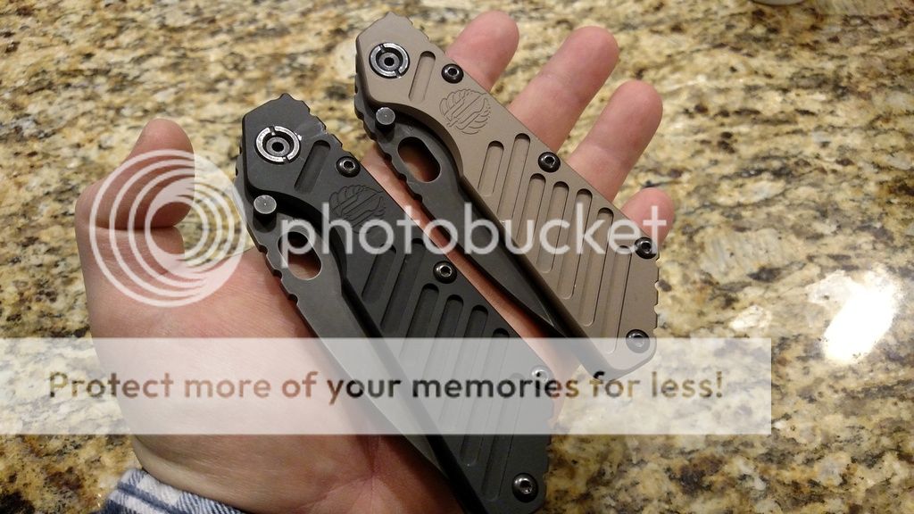 SOLD>>>FDE/Bronze Aluminum SMF with S35VN, black oxide blade. Knife is in excellent condition overall, a couple of scuffs from carry on the blade and scale, has seen next to no use however. Still has factory sharpened edge and is in outstanding shape.