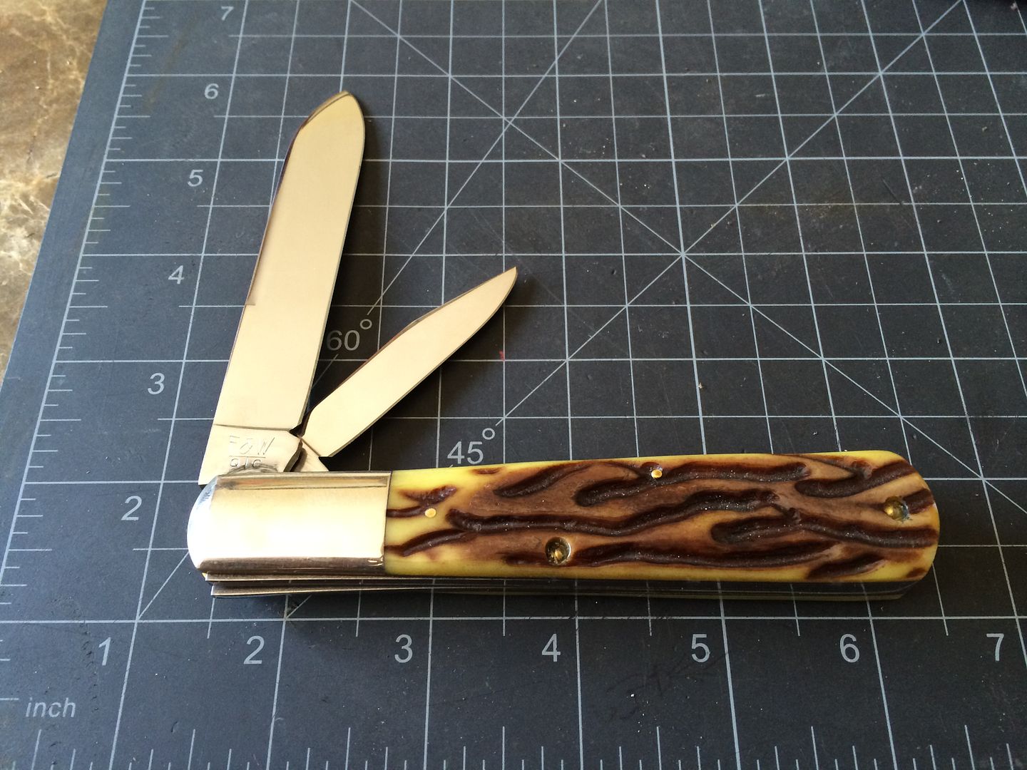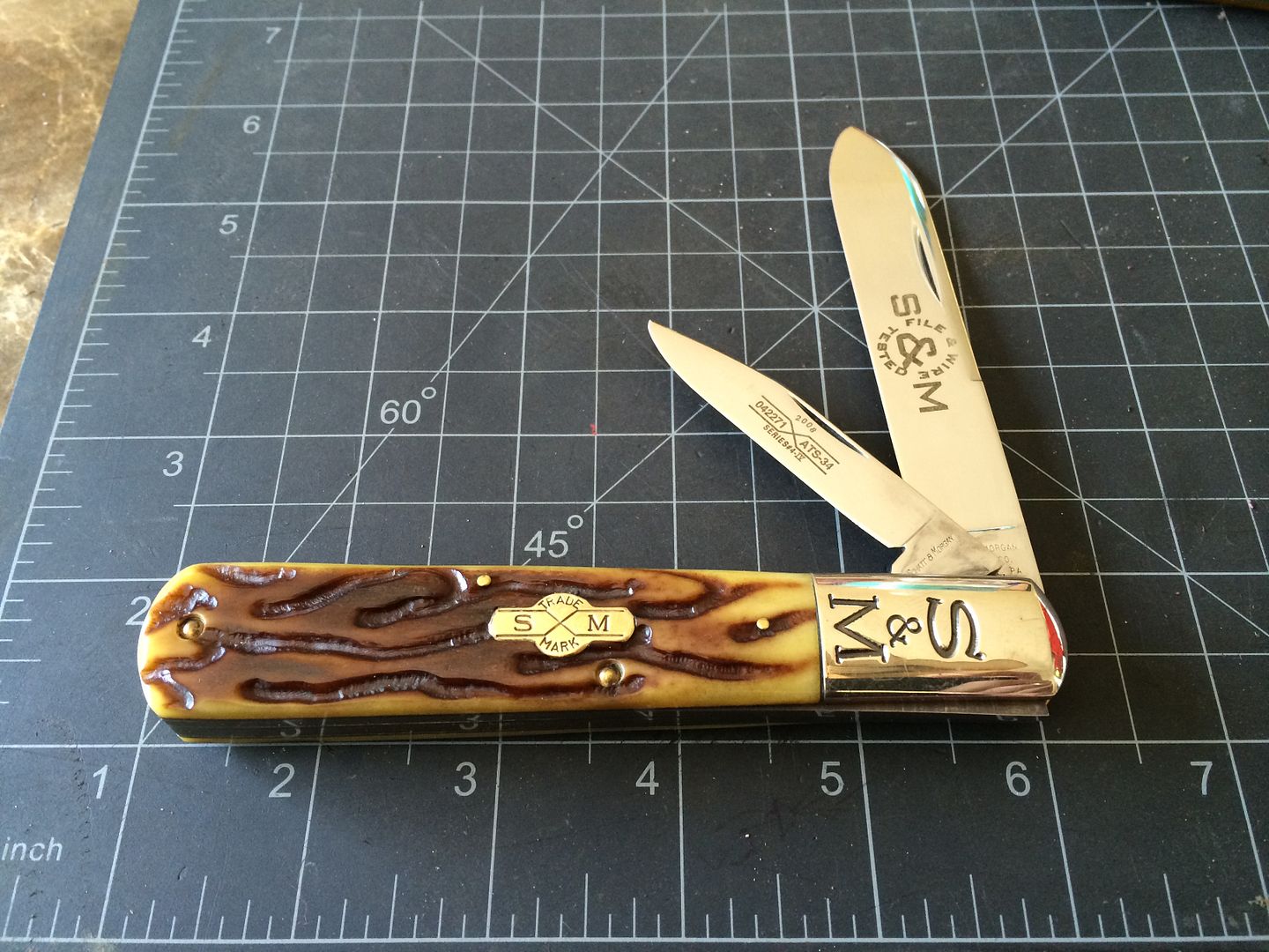 2008 Schatt & Morgan File and Wire Daddy Barlow series 4 in caramel worm groove bone, used but in great condition, never sharpened:$70SPF