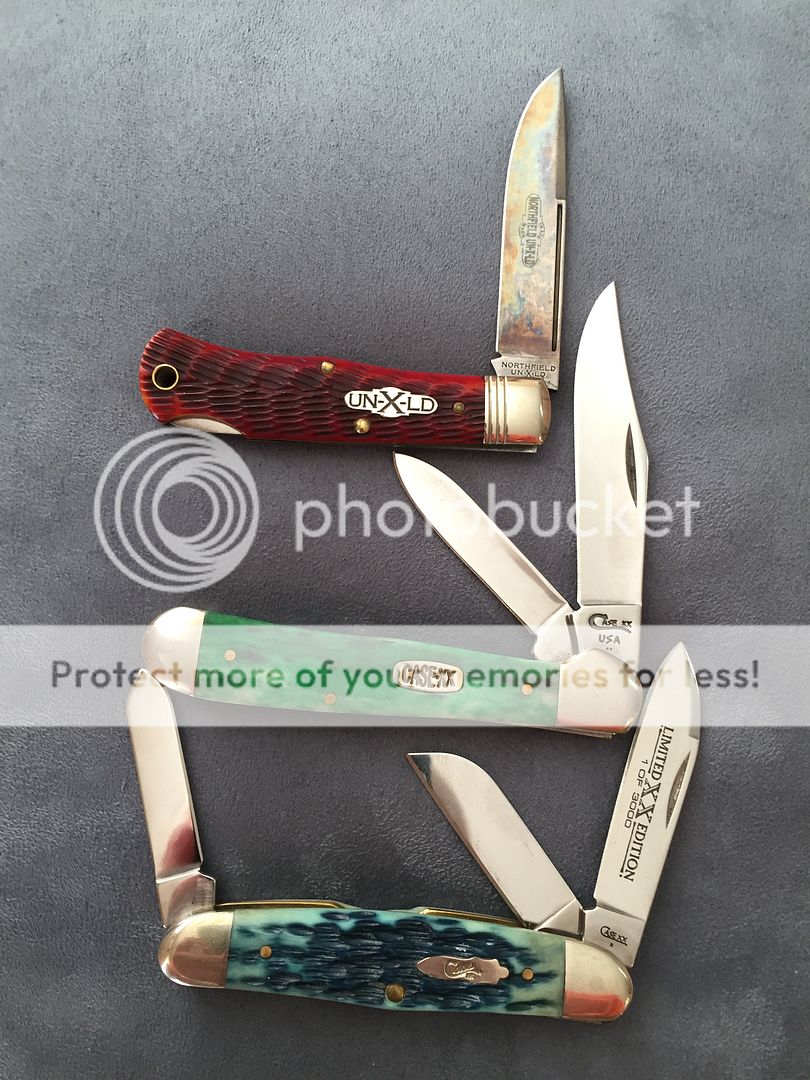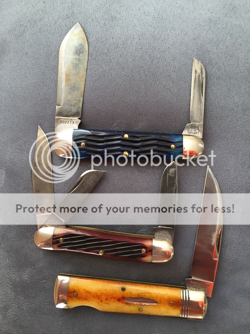 1. SOLD 792213 - Montana Workhorse in Stonewashed Blue jigged bone. Lightly used, honed on SharpMaker and vinegar forced patina. $100 SOLD