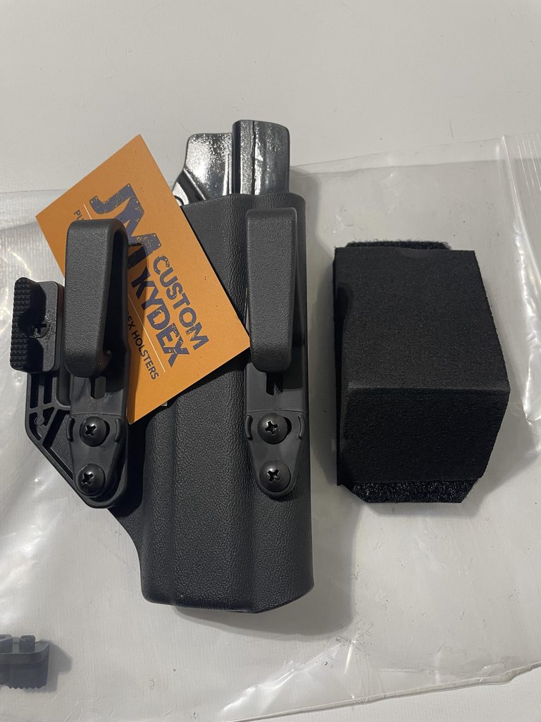 For sale is a new JM Custom Kydex Wing Claw 2.0 AIWB 1911 Commander size holster. It has the 1.5" overhook belt option, right side carry, full guard, and an angular muzzle wedge pad. Asking $65 shipped in US only and payment via PayPal. Only opened for pictures.