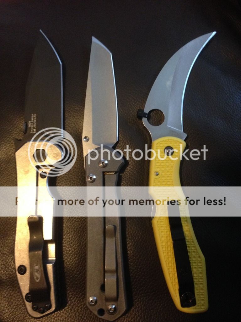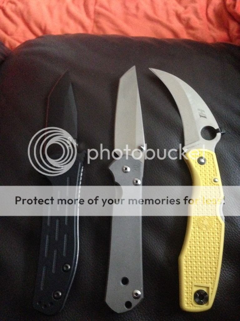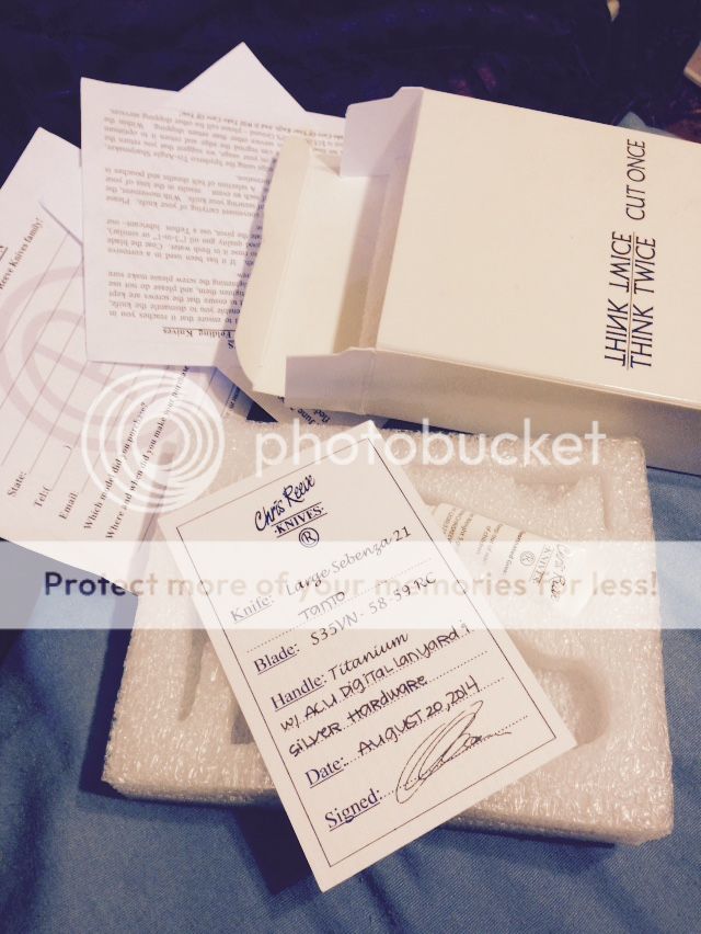 Chris Reeve TNK exclusive Large Tanto Sebenza - has been carried and lightly used. Shows some snail trails but nothing major...Blade looks new. Very smooth action, locks up nice and solid in all directions, lock up is typical crk- around 70%. The ONE issue is that the blade is VERY slightly off center towards the presentation side but not bad and not close to rubbing.. Most ppl probably wouldn't even notice. Talked to CRK and they said it probably just needs new washers and to send it in to be fixed for free. It never bothered me enough to send it in though- I just loved it and carried it. Comes with box, paperwork, and lube- no cloth or lanyard