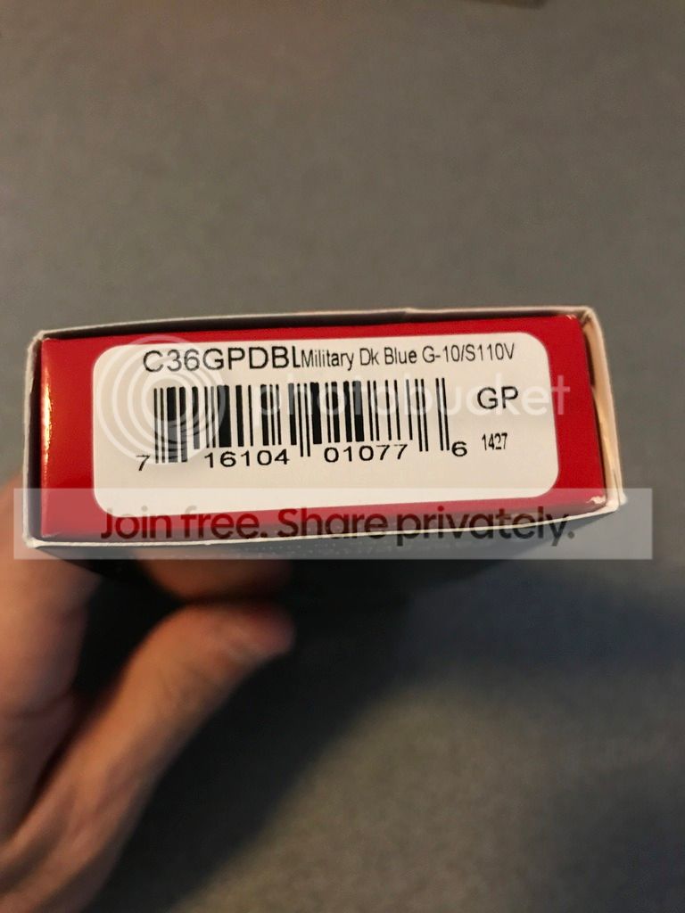 I have for sale a NIB, never used, never sharpened Spyderco Military S110v - C36GPDB - Dark Blue G10. Good centering, very sharp. Box has a crease from shipping when it arrived to me.