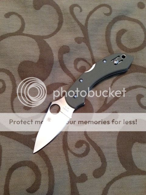 Third, I have a LNIB Spyderco Dragonfly in foliage green g-10. I bought this two customize it but didn't get around to it. Original owner carried it very lightly. No scratches on the blade. Very small nick in the edge that will sharpen out. Tried to capture in picture but to small to see. Only asking $65 + $5 shipping.