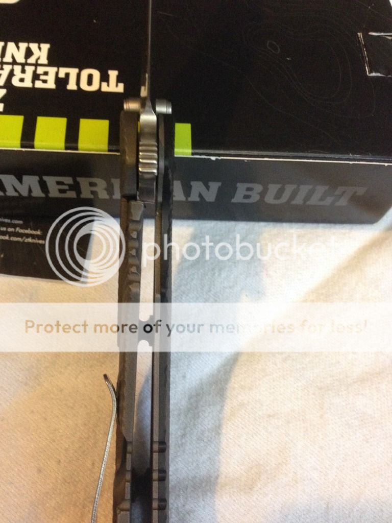 Centered blade, silky smooth action, solid/early lock up. There's no serial number bc Zt replaced the blade (was off center before) --also they fixed it after the bead blasting so don't worry about that affecting warranty- it doesn't