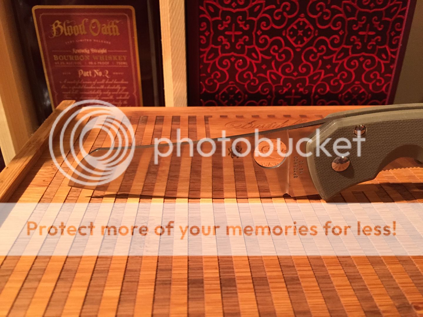 This one is used and the blade has polished to a near mirror finish. Still razor sharp and center. some wear signs on the G10.