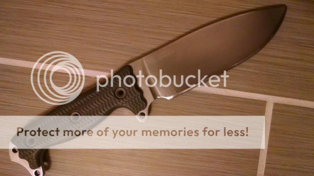 There is a tiny spot on the logo side of the blade that I've just now noticed. I'll get a pic up of it asap