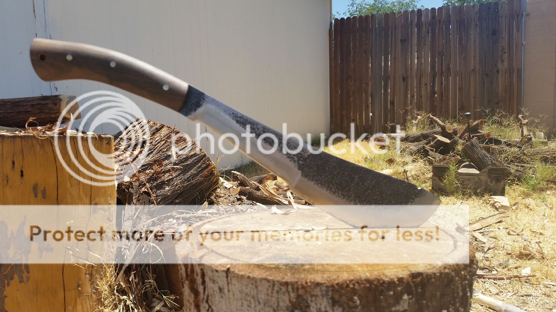 The TOPS TB tracker comes stock with the sweet spot too close to the handle for chopping in my opinion only. One of the criticisms of the design that I've had is that the sweet spot occurs right at that transition point. I don't really understand that choice. The balance point could be shifted forward by skeletonizing the tang, grinding a tapered tang, or lengthening the chopping portion of the blade a little. I've played around with this design a little in my shop. What I've done is to make those changes, make the portion of the blade next to the handle only 2 inches wide. I've been playing around with a Scandi grind next to the handle with a full height, beefy convex grind upfront. The knife makes a little more sense to me that way, at least for the described purpose for the knife and for how I actually use it.