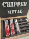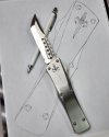 Getting started on the next book spot, going under the chisel is this massive custom stainless Combat Troodon from Anthony Marfione. Got the design sketched up, now to get it disassembled and ready to start engraving. Going with a "battle worn" flag design using enamel for color since this is a stainless chassis...I think it's gonna be awesome