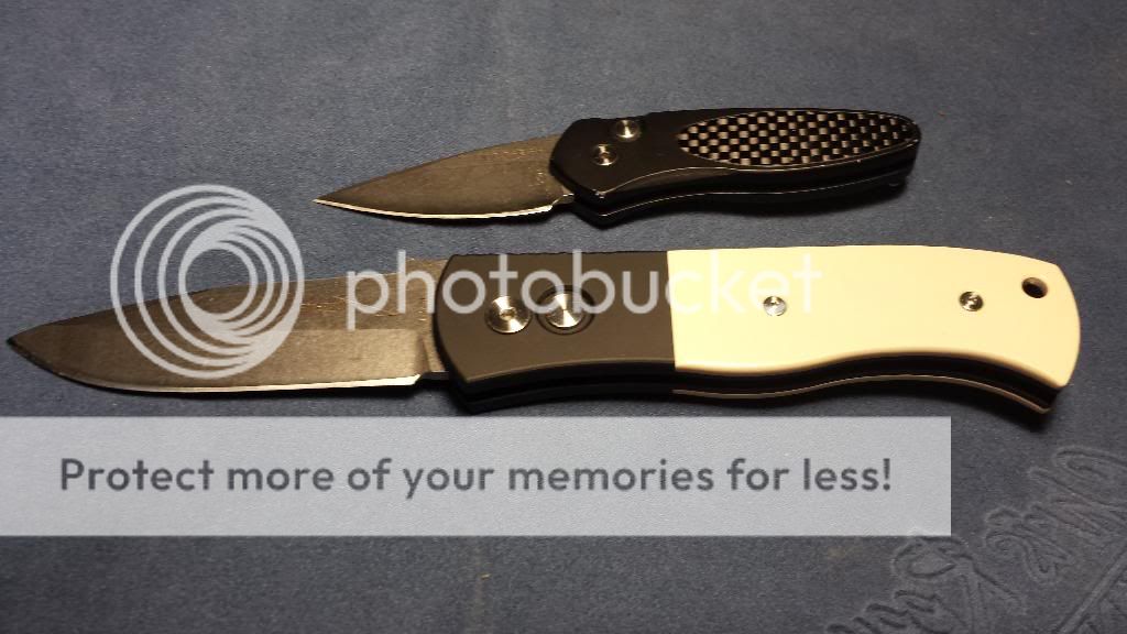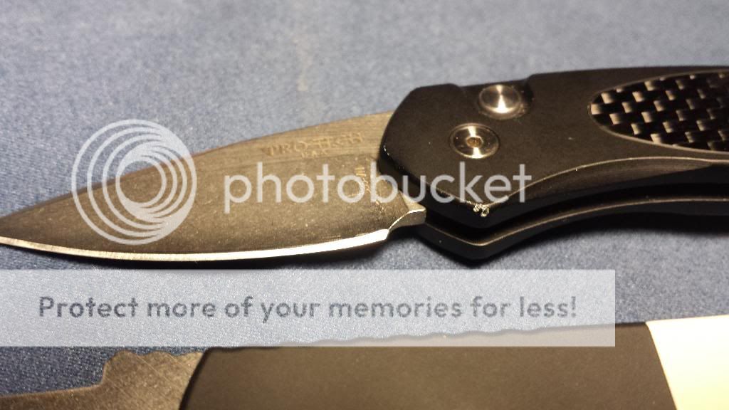 Next up is a used protech sprint black aluminum with CF insert. It has a few small dings on it which you can see in the pictures and it has marks on the cf insert. I am asking spf shipped to you. If you want both knives I'll sell them for $210 together.