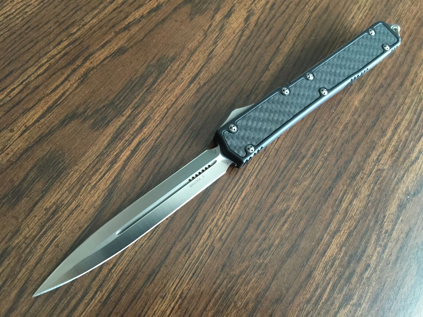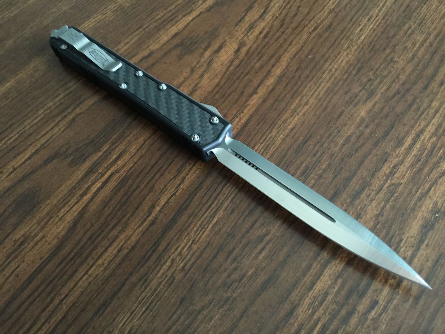 Super fun knife, but I just don't carry it. Fires and retracts great, hard firing. This has a few light marks on the handle, which I've tried to capture. I think one is from my wedding ring and another is from a jeans pocket rivet. The handle isn't pristine, but I think you'll be very happy with the condition. Satin Elmax blade, peel ply CF inserts. These haven't been for sale for a while. Asking $450.