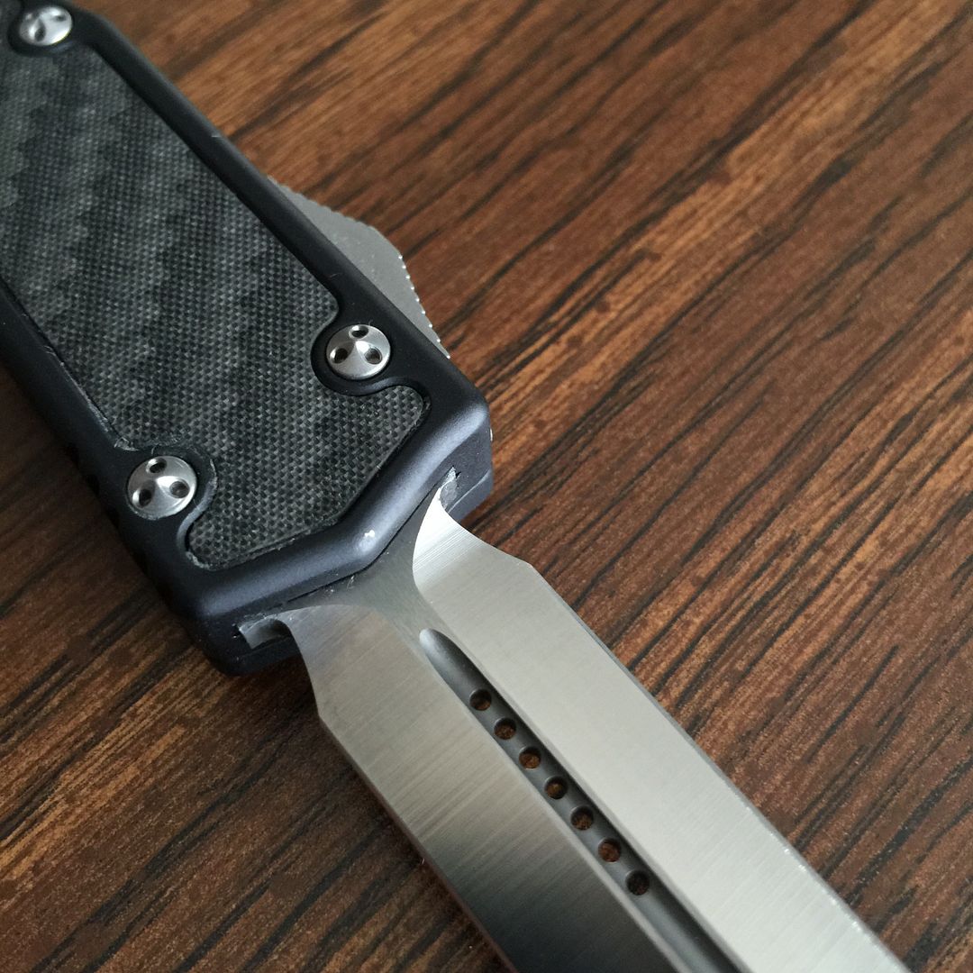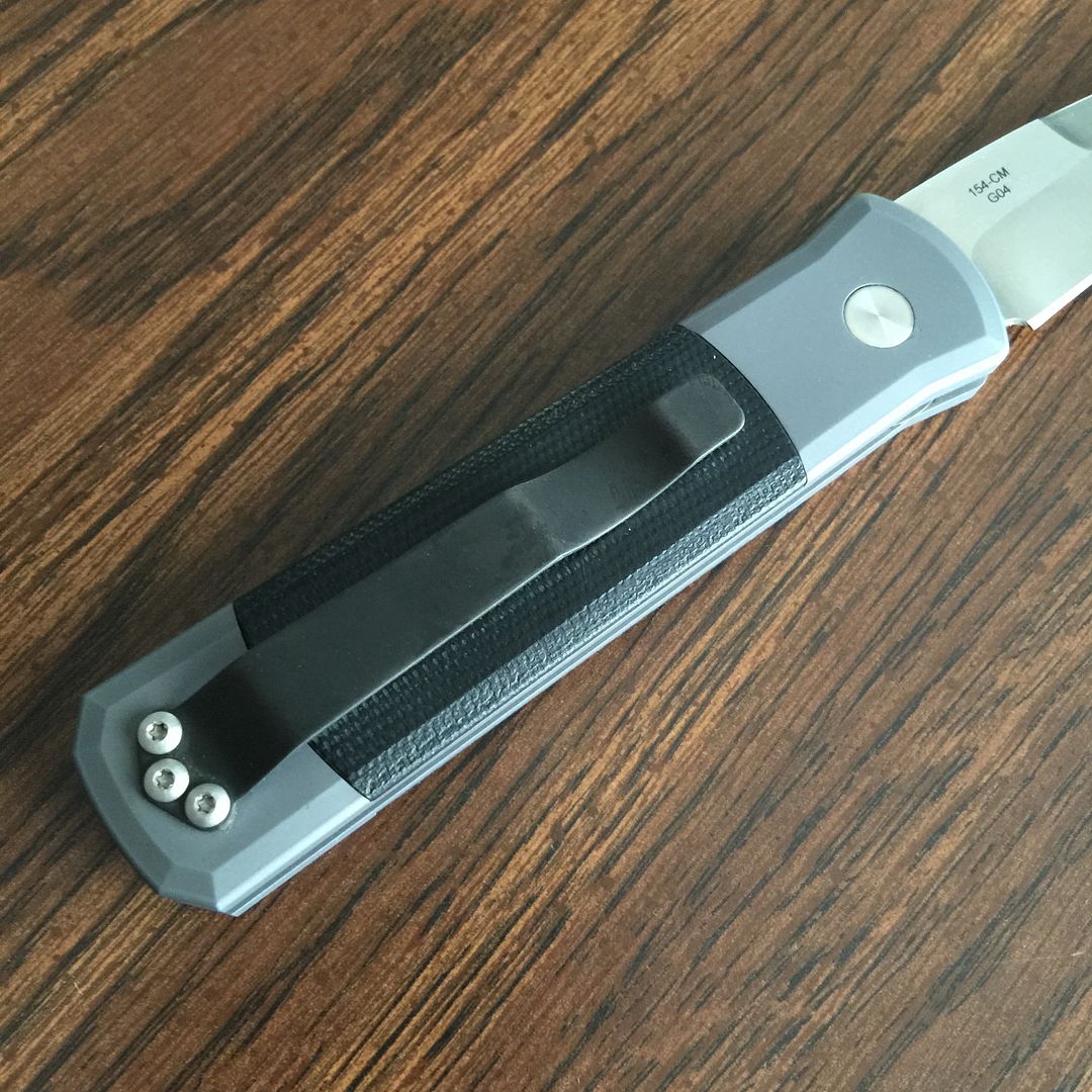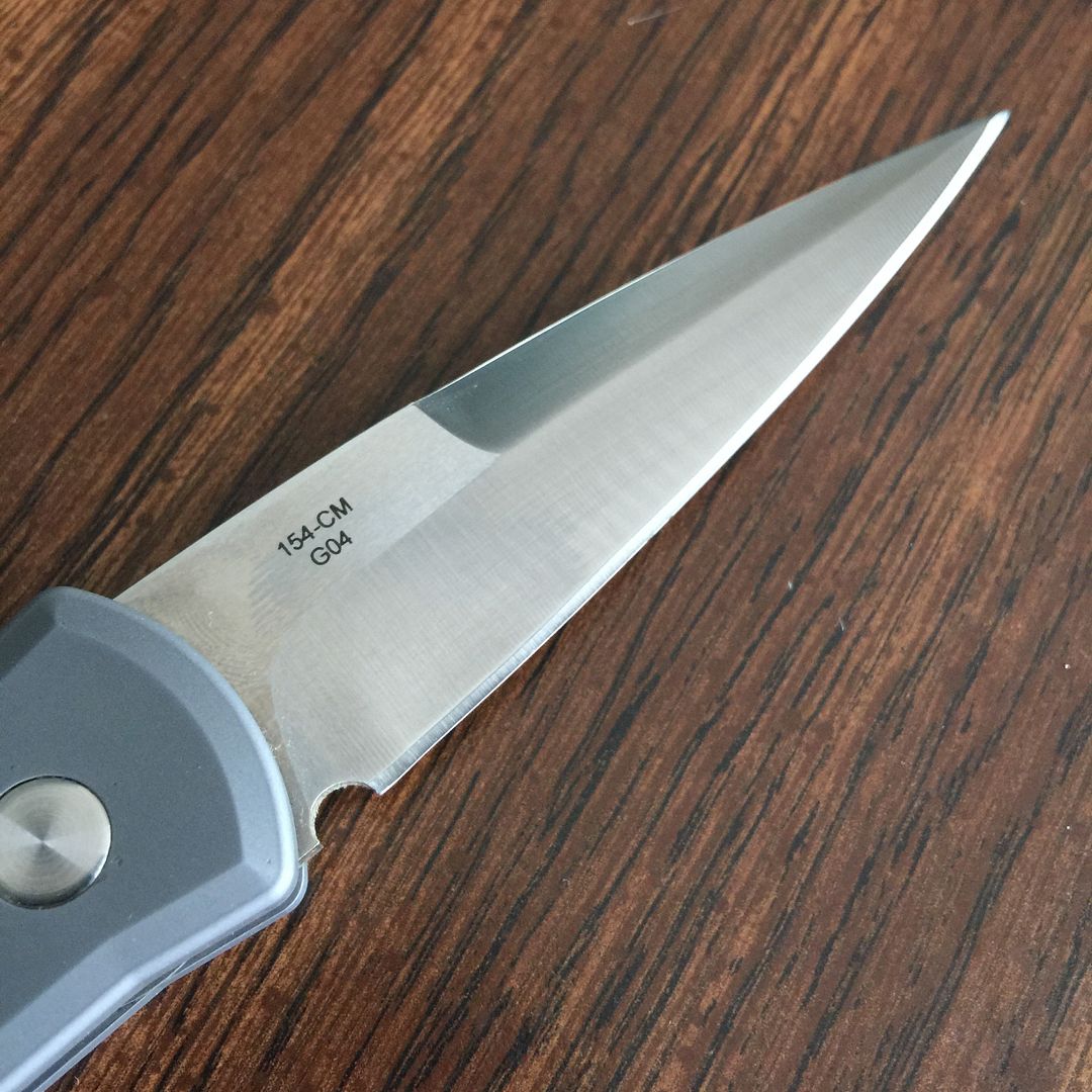 Great auto, but I want something a little larger. 154CM satin blade, blasted aluminum handles with black G10 inserts. Probably has a few snail trails on the Al, as it's impossible to avoid, but nothing major. Asking $150.
