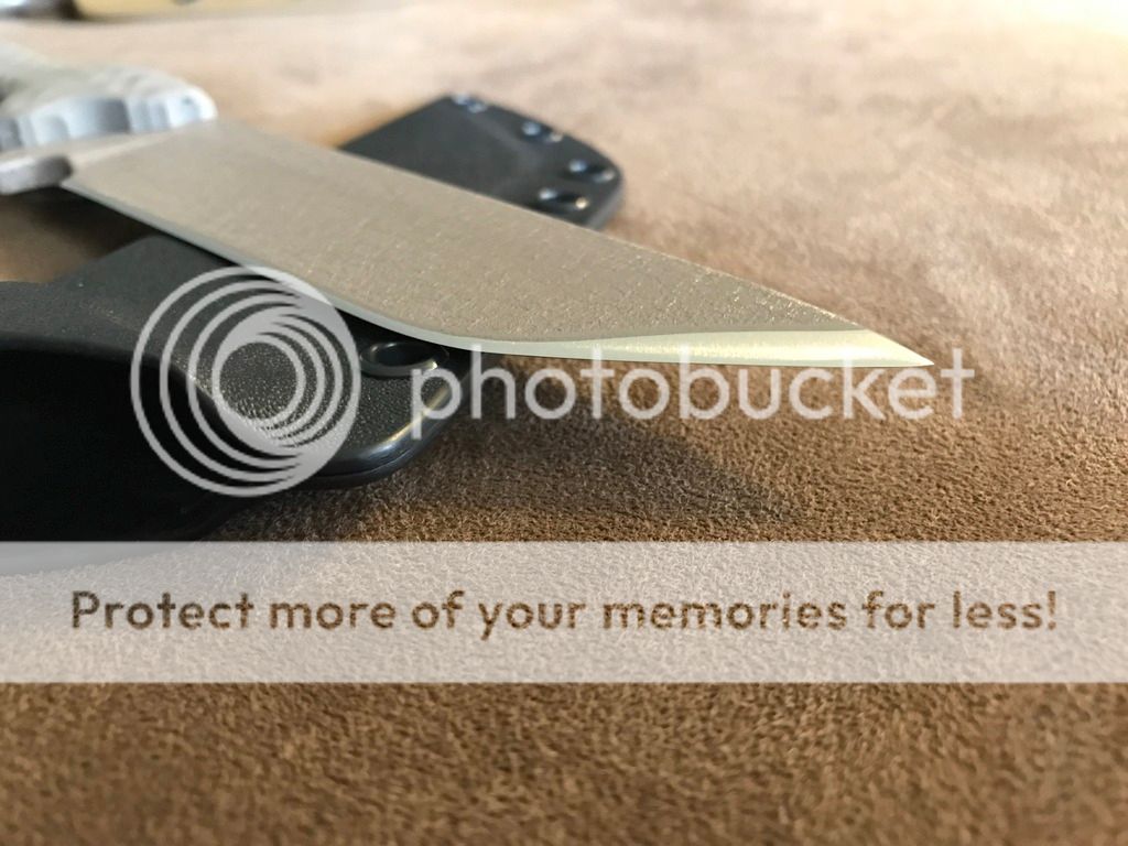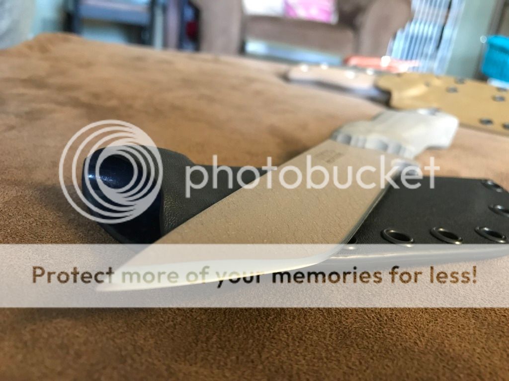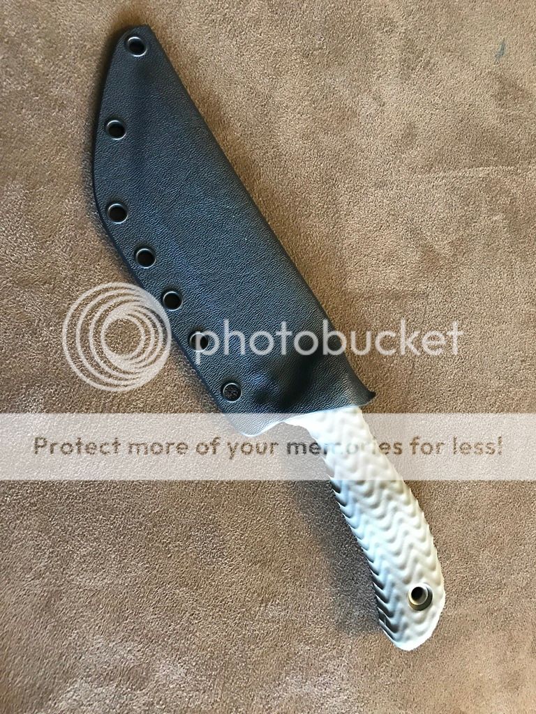 Some tiny marks on the butt of the handle but the knife is unused. It comes with a kydex sheath that was made by the forum member that I bought the knife from.