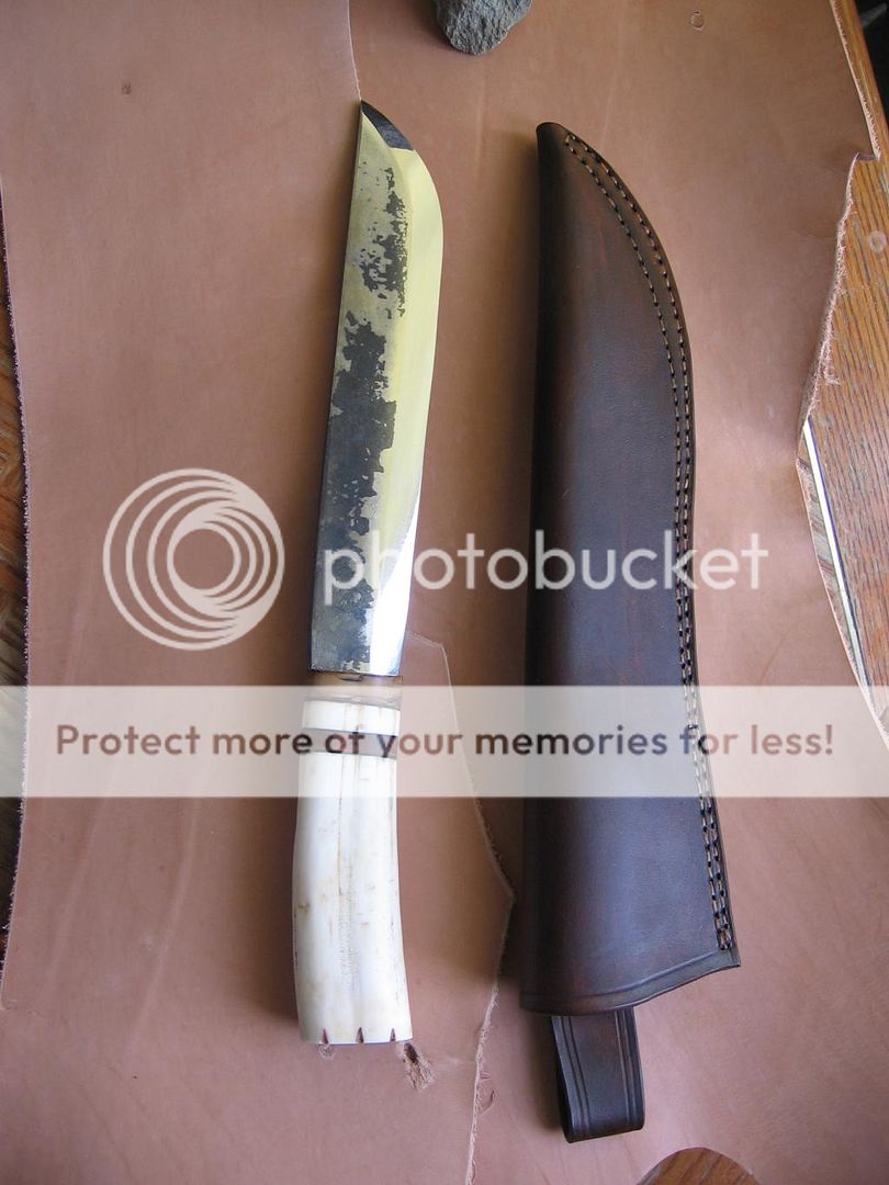 I was going to make him a traditional leuku sheath but he doesn't like the dangler style so we went with a basic tank of a pouch sheath.