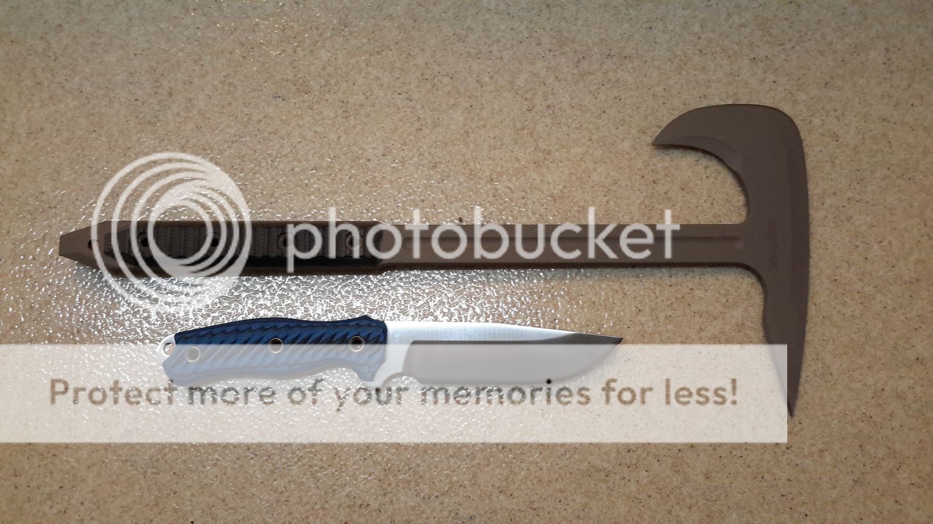 The second is an INFI-Du. This is a repost (a day early, I won't be around tomorrow). Satin finish (discontinued) Bruiser G-10 scales. Beautiful piece. Great to shave the turkey, ham and shave your neighbor's Movember for trying to stop you from taking his tree!! Tactical cardboard sheath and fancy plastic netting included!! $SPF USD net to me including shipping or over night shipping for $SPF usd to me!!