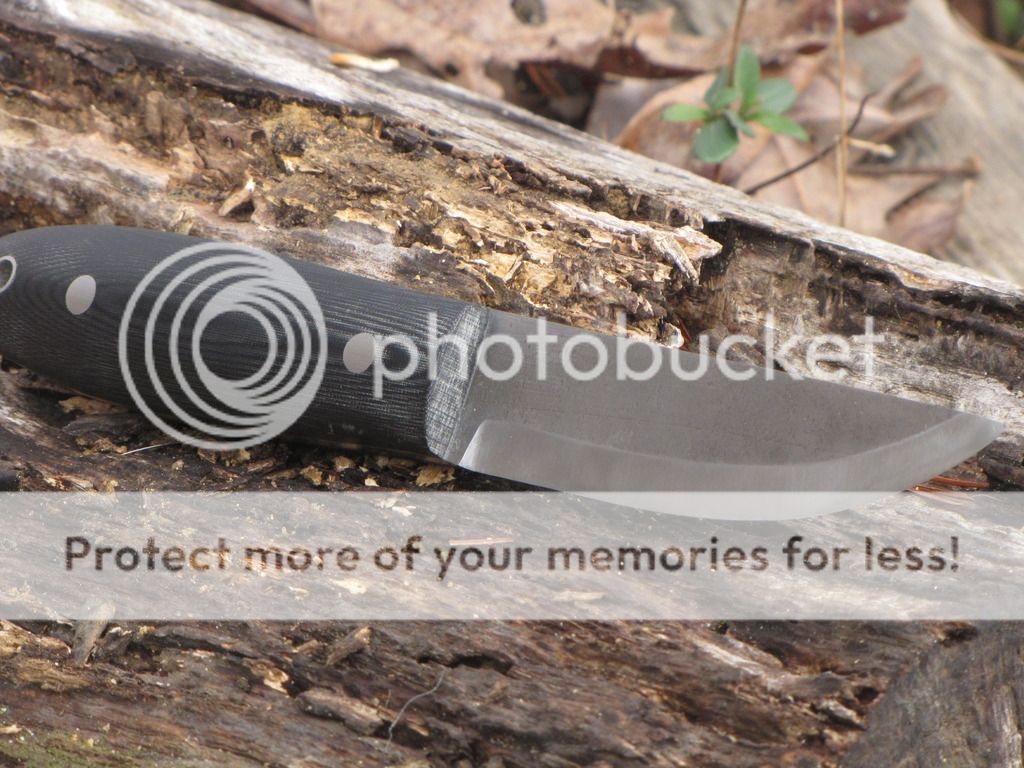 Here is true scandi-ground Puukko from 1/8" 52100. The blade is 4". The handle is 4 1/8" with black linen micarta and stainless hardware. Comes with leather sheath.