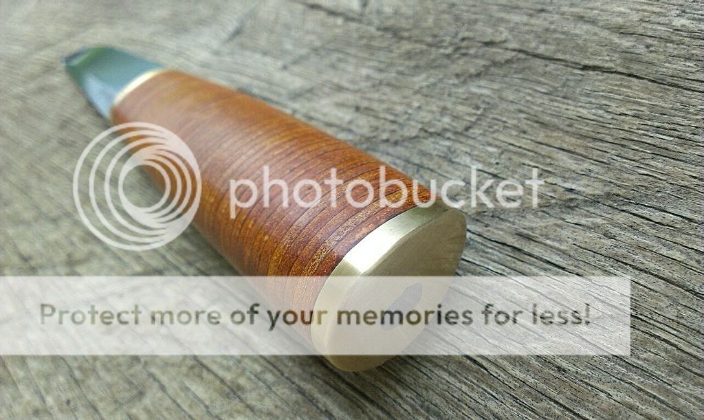 Rhombic cross section blade is 52100 steel and has 3.4" cutting edge , thickness 0.137" (0.07" in spine)