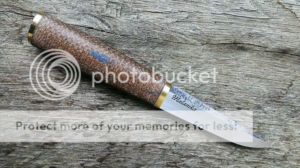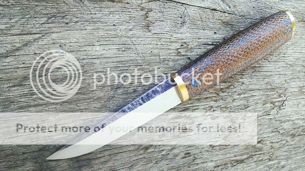Rhombic cross section blade is forged in 80crv2 steel and has 3.8" cutting edge , thickness 0.17" (0.1" in spine)