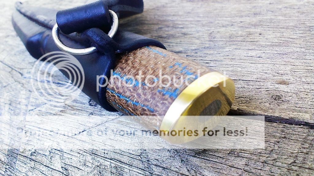 Sheath is black coloured leather, with wooden inlay and back seam.